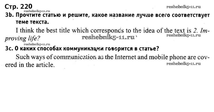 Готовая домашняя работа с ответами по Английскому языку за 9 класс Лапицкая, Демченко, Волков Учебник Высшая школа 2018 ФГОС - Страницы 220