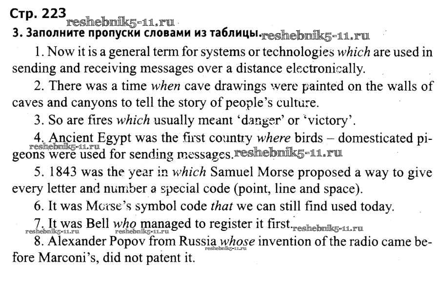 Готовая домашняя работа с ответами по Английскому языку за 9 класс Лапицкая, Демченко, Волков Учебник Высшая школа 2018 ФГОС - Страницы 223