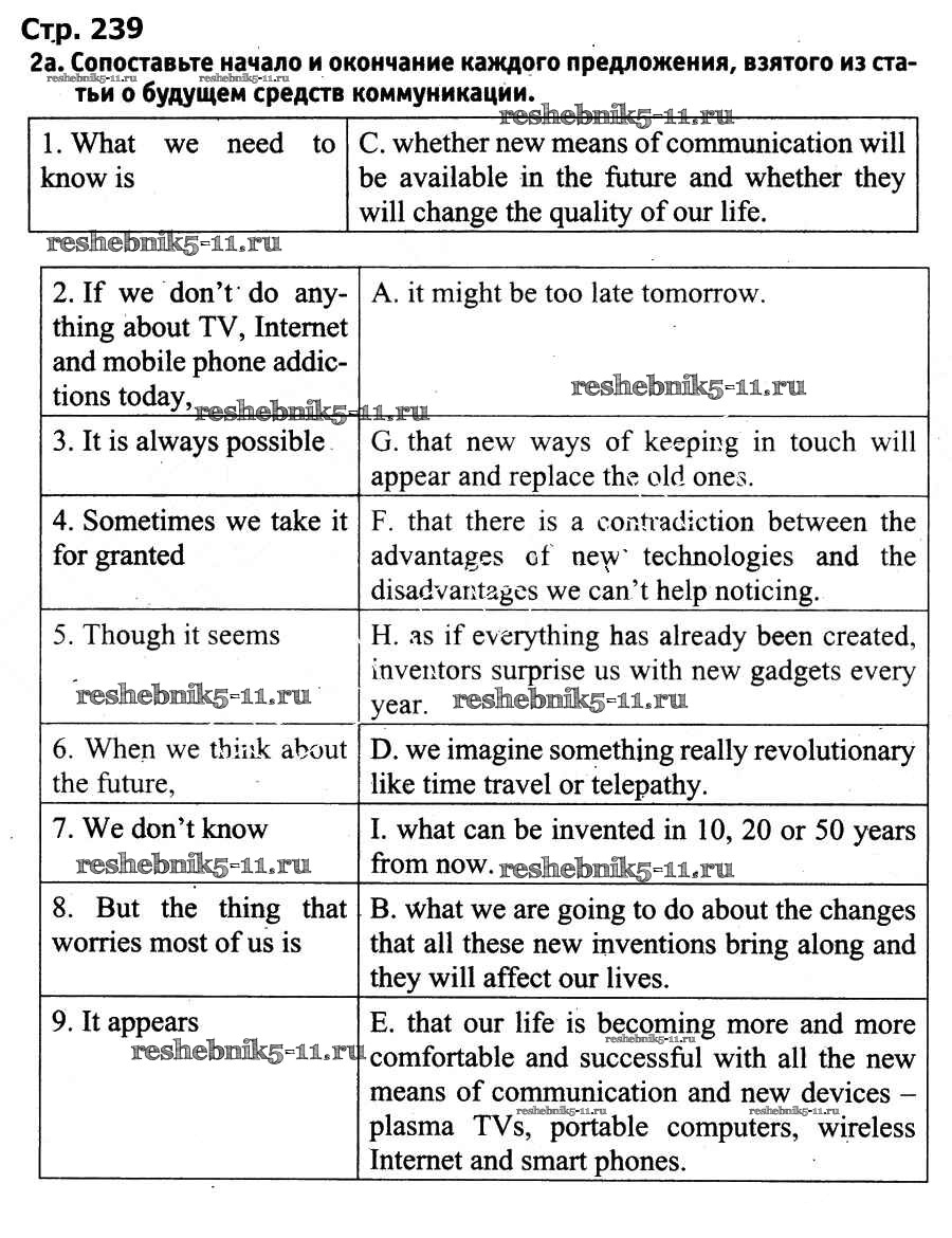 Готовая домашняя работа с ответами по Английскому языку за 9 класс Лапицкая, Демченко, Волков Учебник Высшая школа 2018 ФГОС - Страницы 239