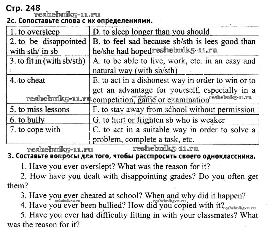 Готовая домашняя работа с ответами по Английскому языку за 9 класс Лапицкая, Демченко, Волков Учебник Высшая школа 2018 ФГОС - Страницы 248
