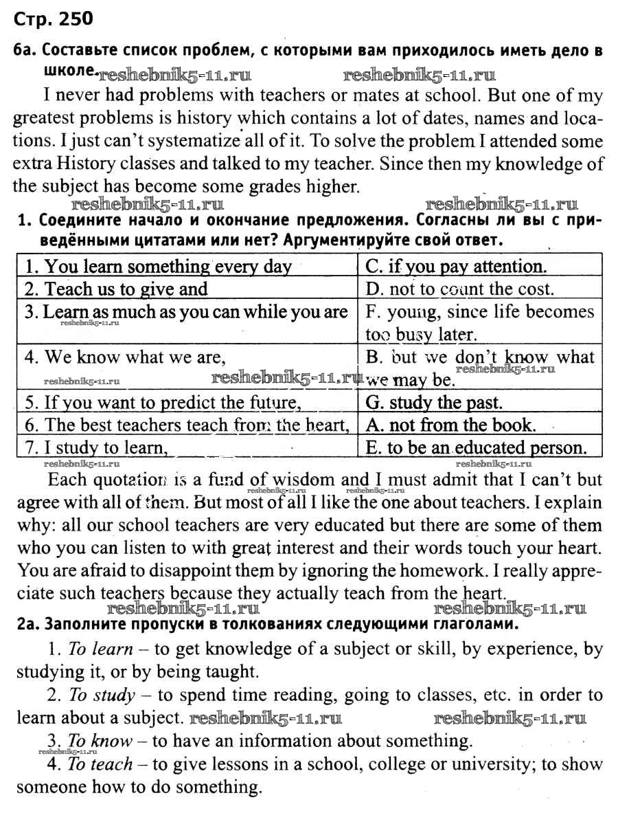 Готовая домашняя работа с ответами по Английскому языку за 9 класс Лапицкая, Демченко, Волков Учебник Высшая школа 2018 ФГОС - Страницы 250