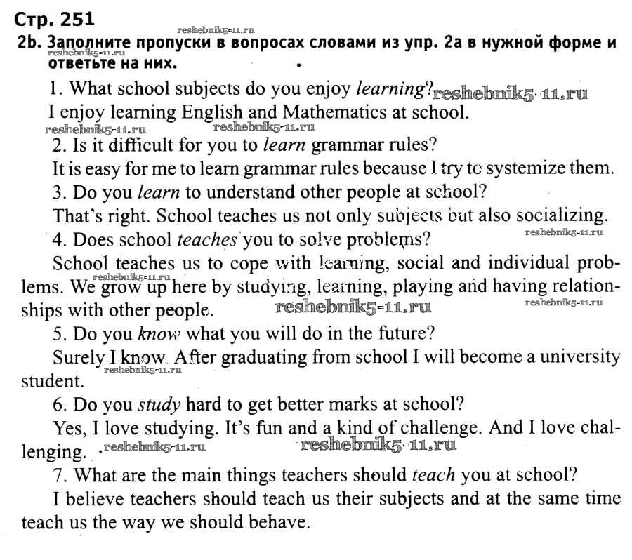 Готовая домашняя работа с ответами по Английскому языку за 9 класс Лапицкая, Демченко, Волков Учебник Высшая школа 2018 ФГОС - Страницы 251