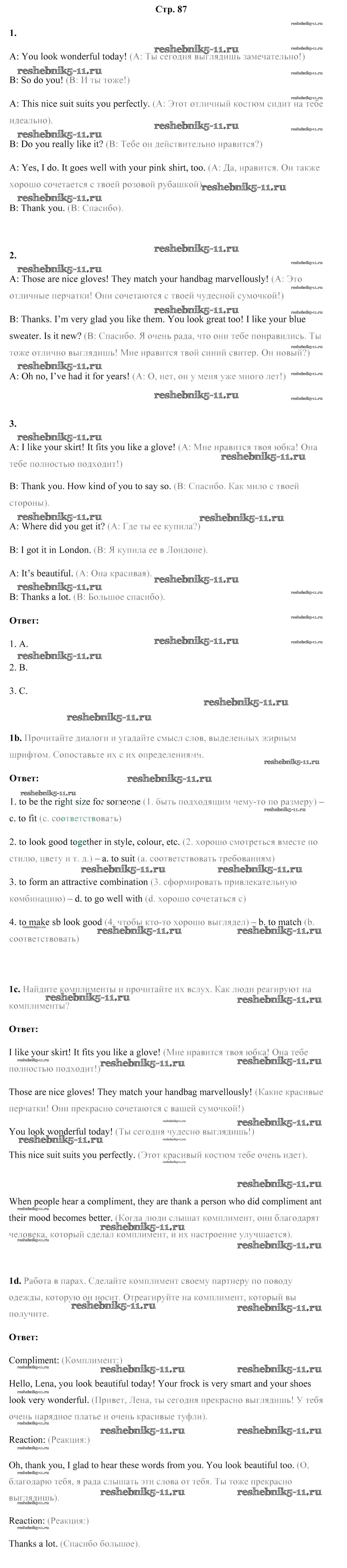 Готовая домашняя работа с ответами по Английскому языку за 9 класс Лапицкая, Демченко, Волков Учебник Высшая школа 2018 ФГОС - Страницы 87