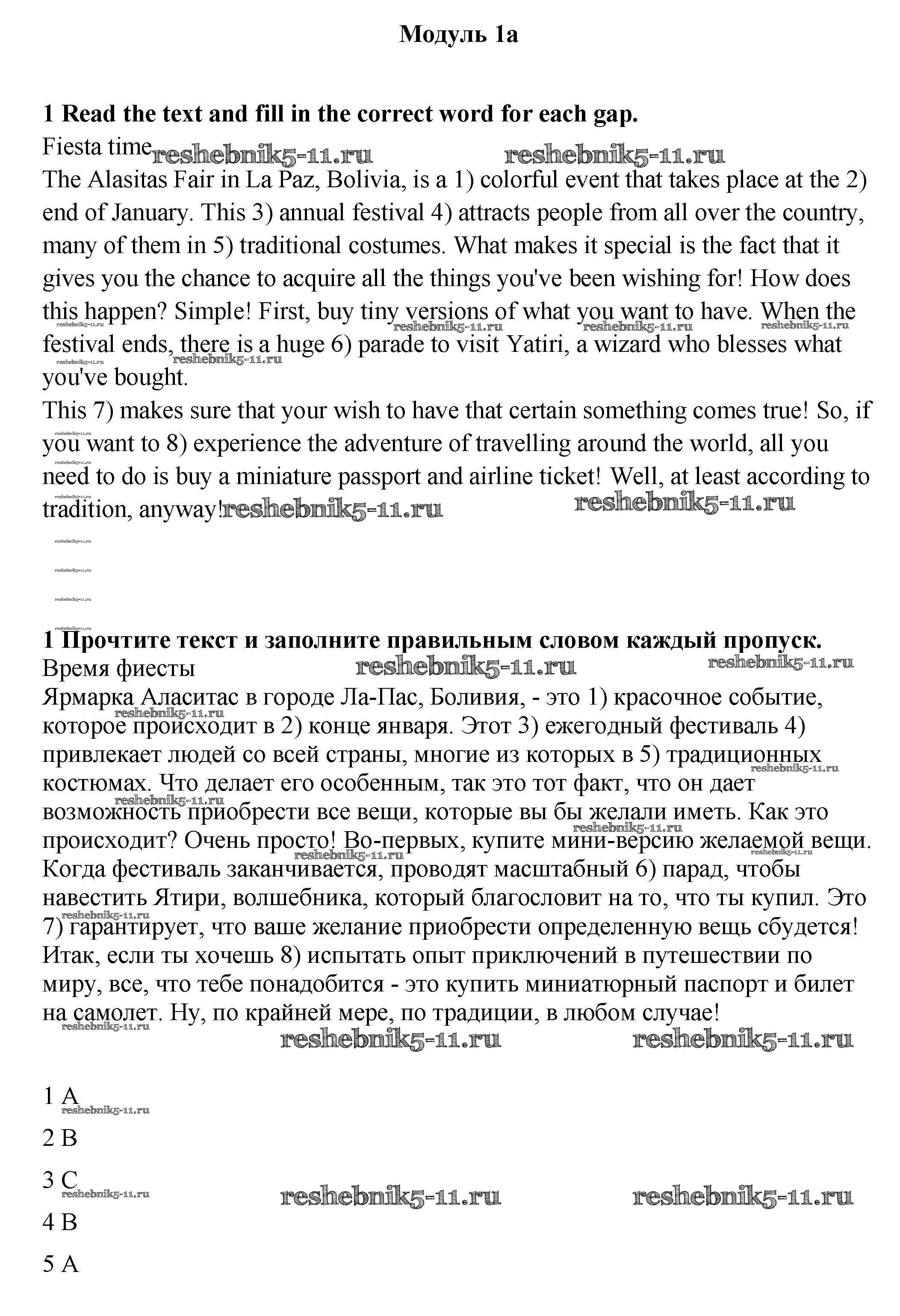 Готовая домашняя работа с ответами по Английскому языку за 9 класс Ваулина, Эванс, Дули, Подоляко Рабочая тетрадь Просвещение 2010 ФГОС - Часть 1a 1