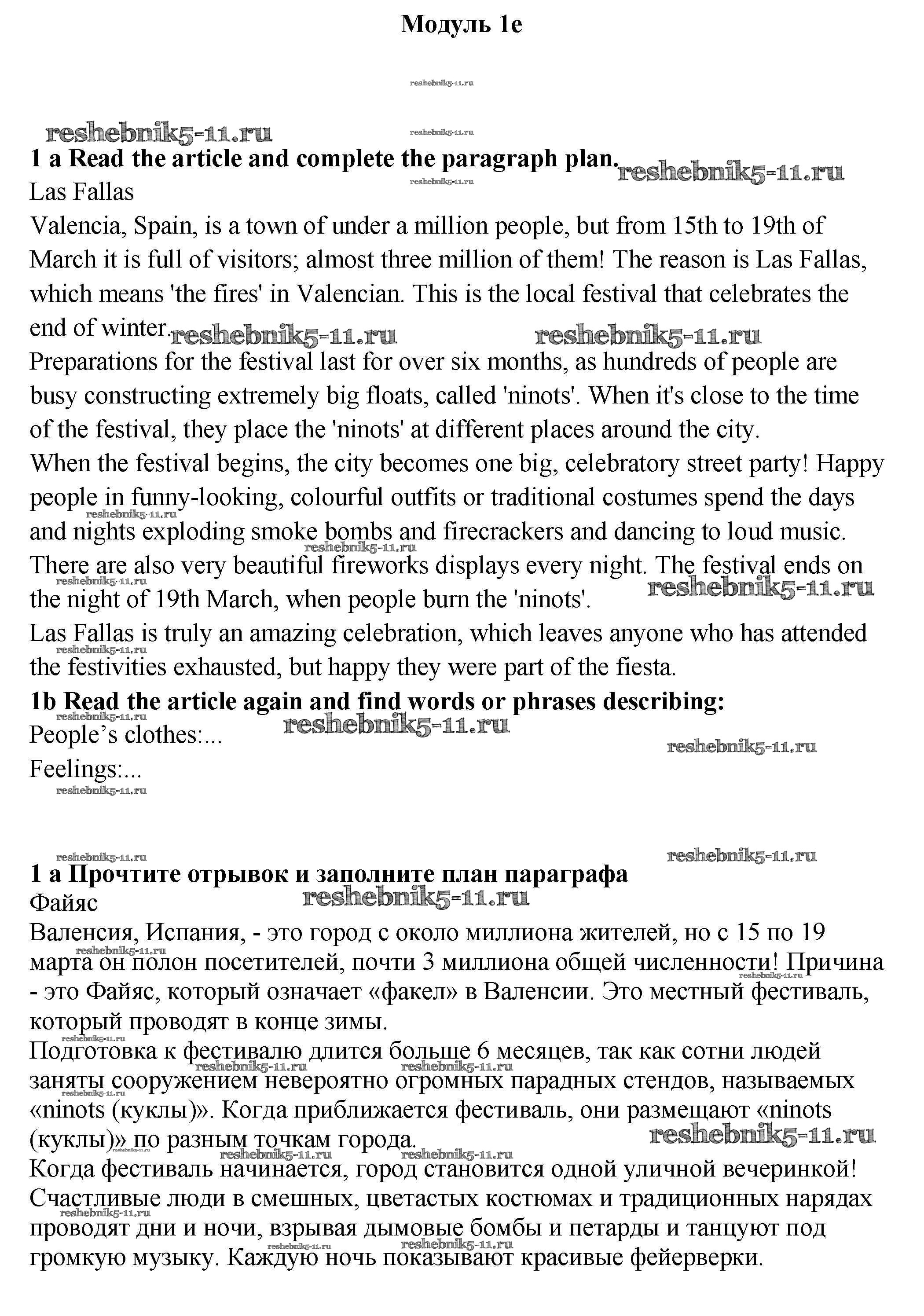 Готовая домашняя работа с ответами по Английскому языку за 9 класс Ваулина, Эванс, Дули, Подоляко Рабочая тетрадь Просвещение 2010 ФГОС - Часть 1e 1