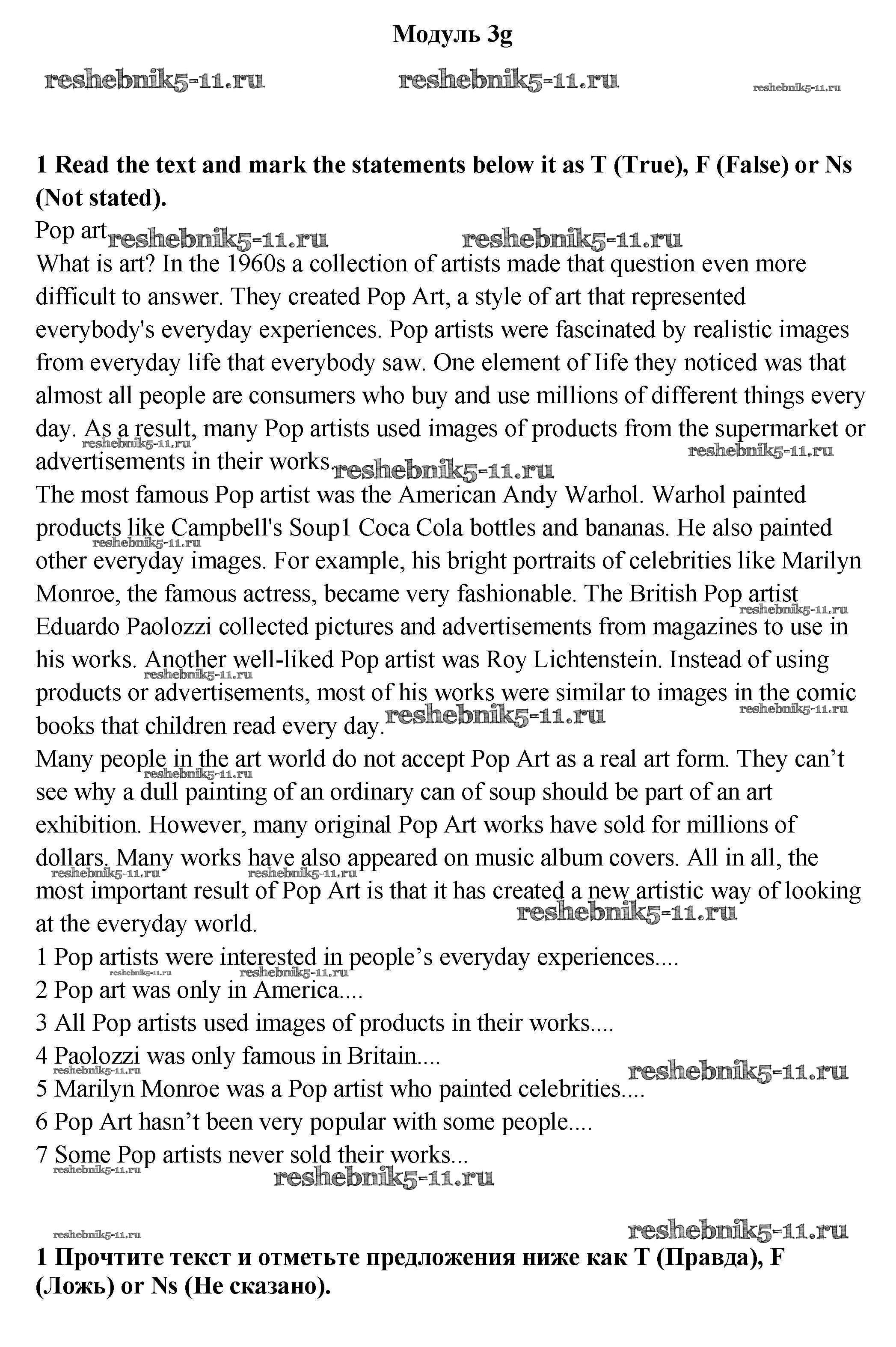Готовая домашняя работа с ответами по Английскому языку за 9 класс Ваулина, Эванс, Дули, Подоляко Рабочая тетрадь Просвещение 2010 ФГОС - Часть 3g 1