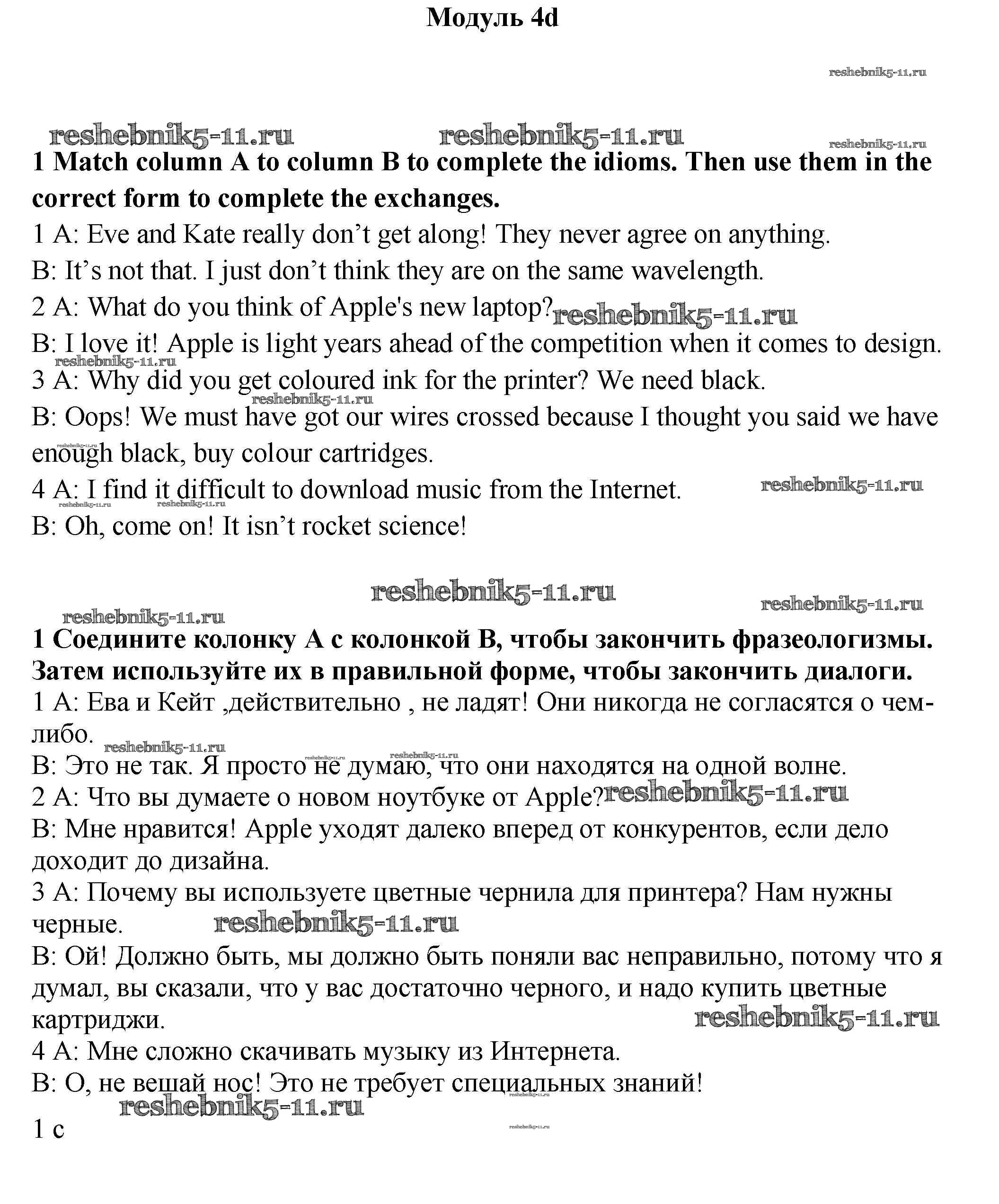Готовая домашняя работа с ответами по Английскому языку за 9 класс Ваулина, Эванс, Дули, Подоляко Рабочая тетрадь Просвещение 2010 ФГОС - Часть 4d 1