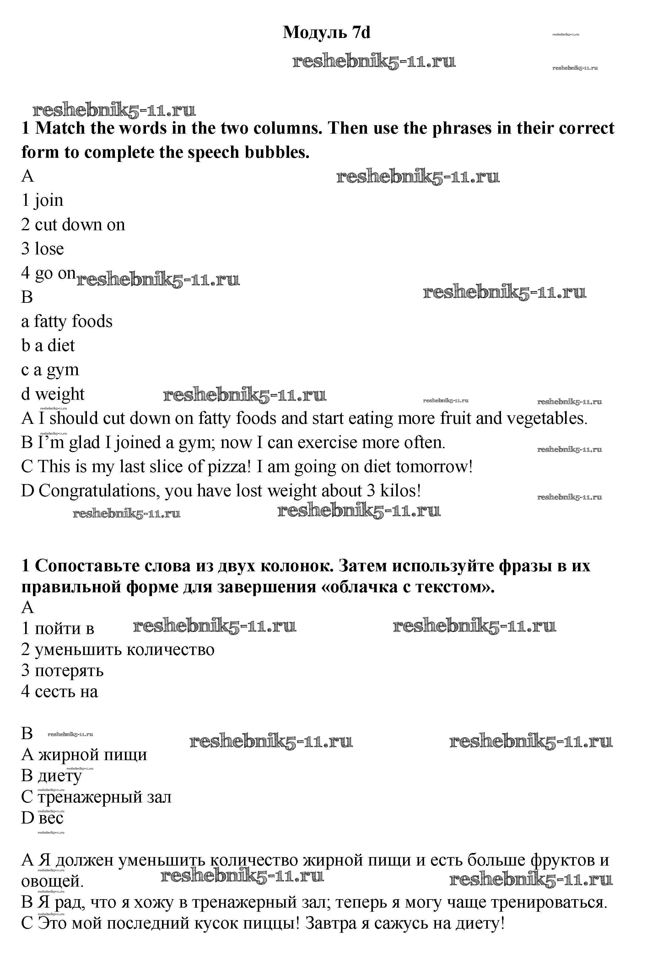 Готовая домашняя работа с ответами по Английскому языку за 9 класс Ваулина, Эванс, Дули, Подоляко Рабочая тетрадь Просвещение 2010 ФГОС - Часть 7d 1