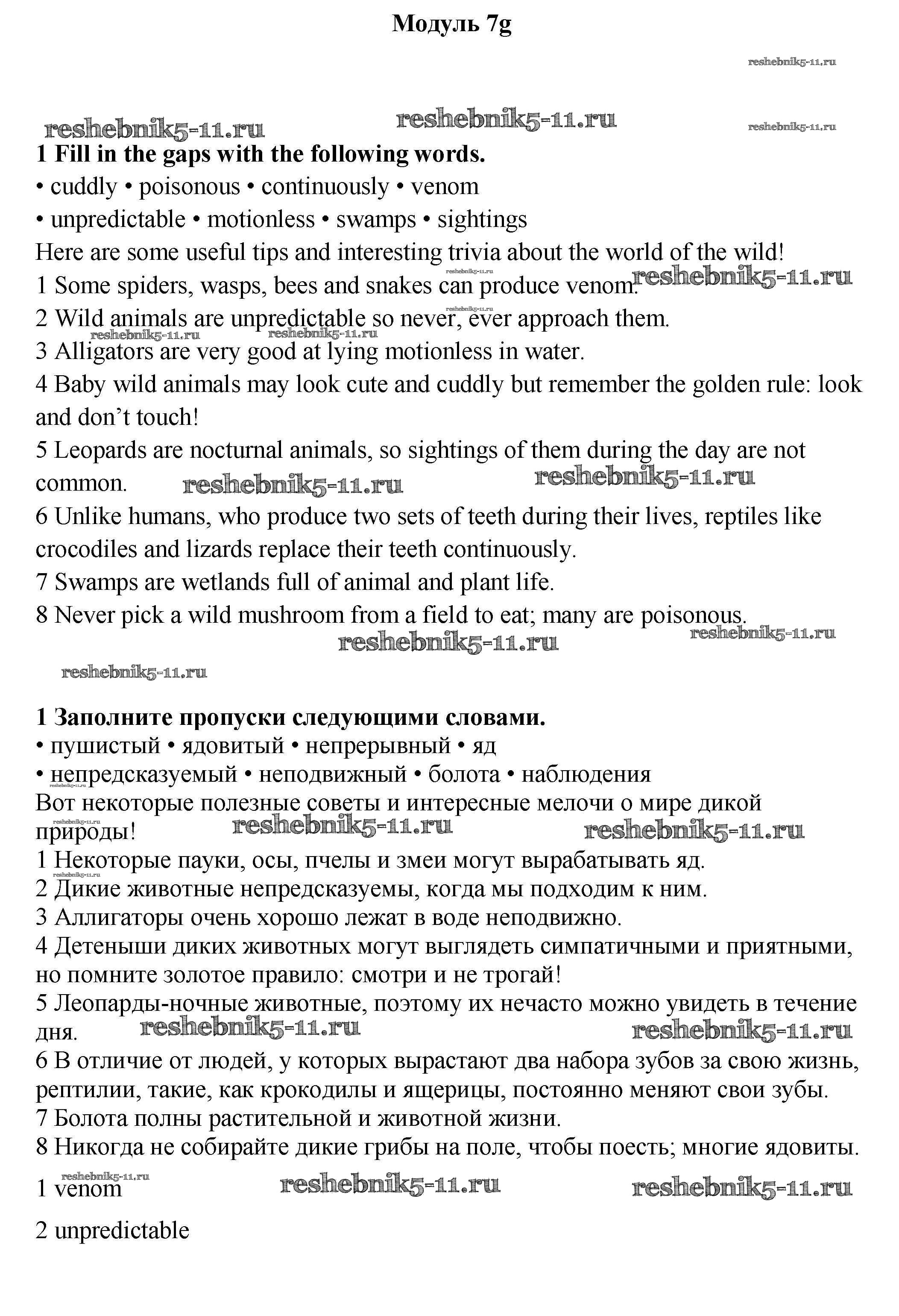 Готовая домашняя работа с ответами по Английскому языку за 9 класс Ваулина, Эванс, Дули, Подоляко Рабочая тетрадь Просвещение 2010 ФГОС - Часть 7g 1