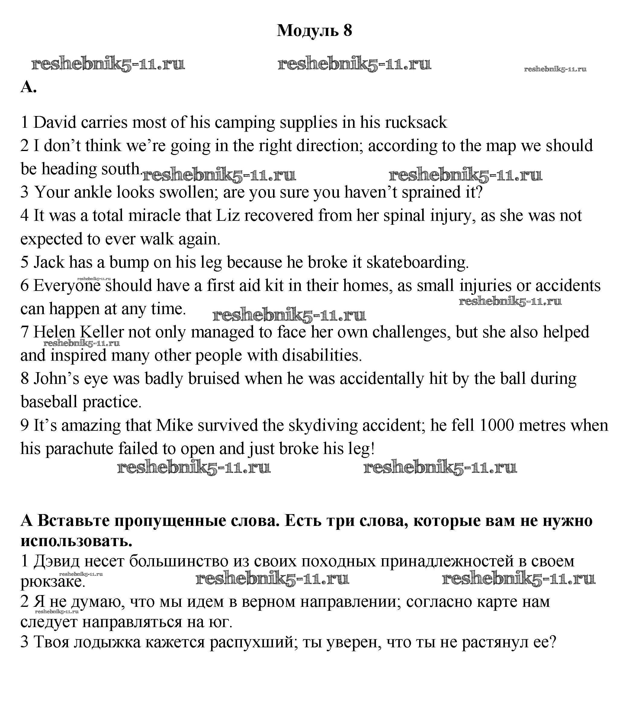 Готовая домашняя работа с ответами по Английскому языку за 9 класс Ваулина, Дули, Подоляко, Эванс Контрольные задания Spotlight Просвещение 2018 ФГОС - Модуль 8 A