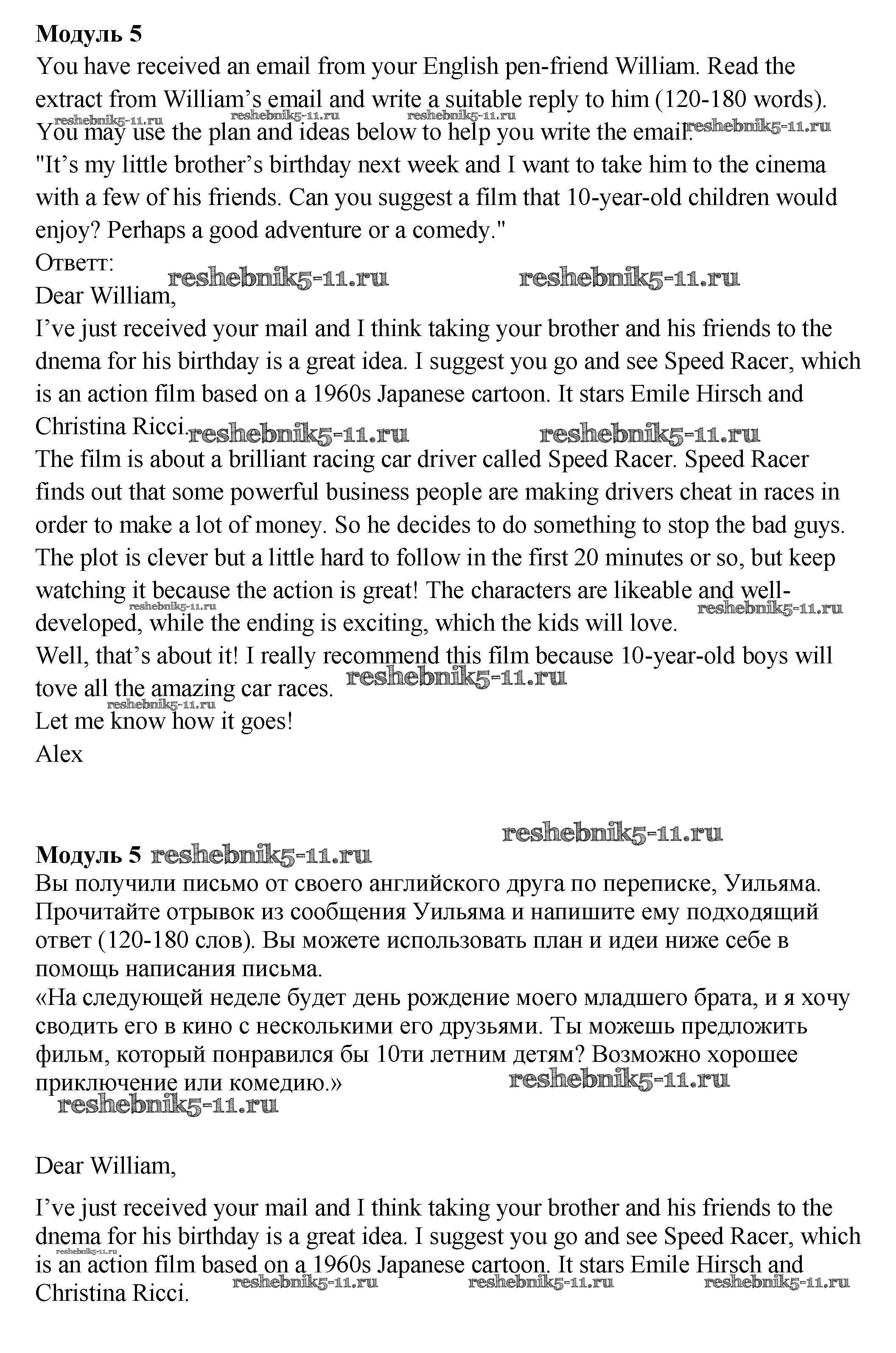 Готовая домашняя работа с ответами по Английскому языку за 9 класс Ваулина, Дули, Подоляко, Эванс Контрольные задания Spotlight Просвещение 2018 ФГОС - Optional writing Module 5