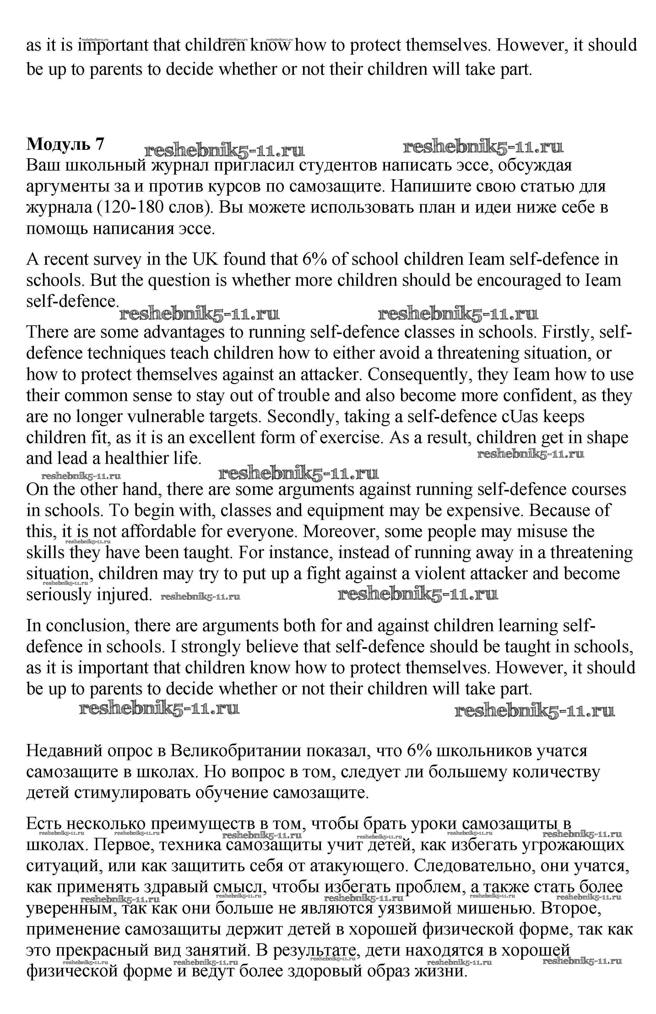 Готовая домашняя работа с ответами по Английскому языку за 9 класс Ваулина, Дули, Подоляко, Эванс Контрольные задания Spotlight Просвещение 2018 ФГОС - Optional writing Module 7