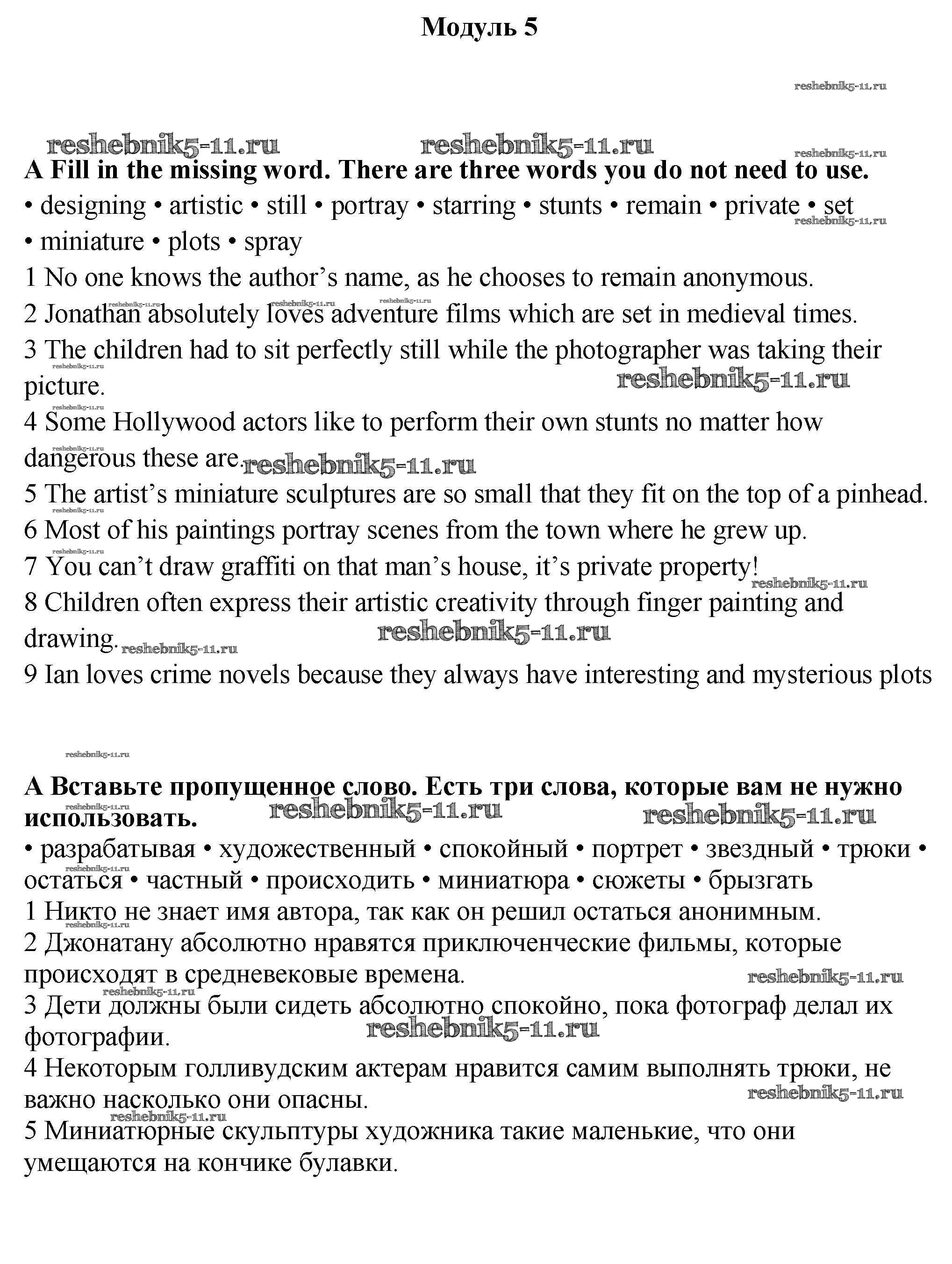 Готовая домашняя работа с ответами по Английскому языку за 9 класс Ваулина, Дули, Подоляко, Эванс Контрольные задания Spotlight Просвещение 2018 ФГОС - Модуль 5 A