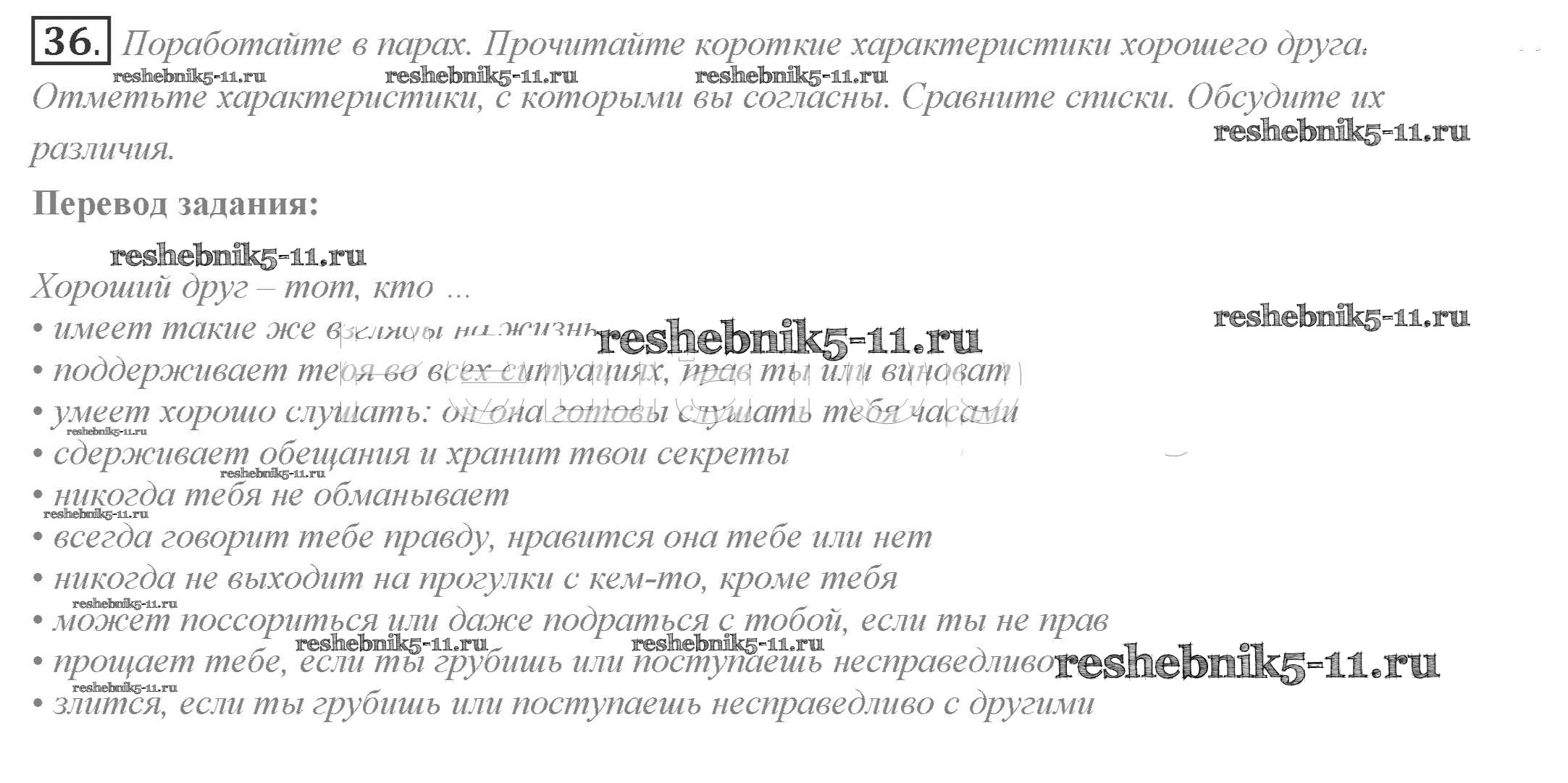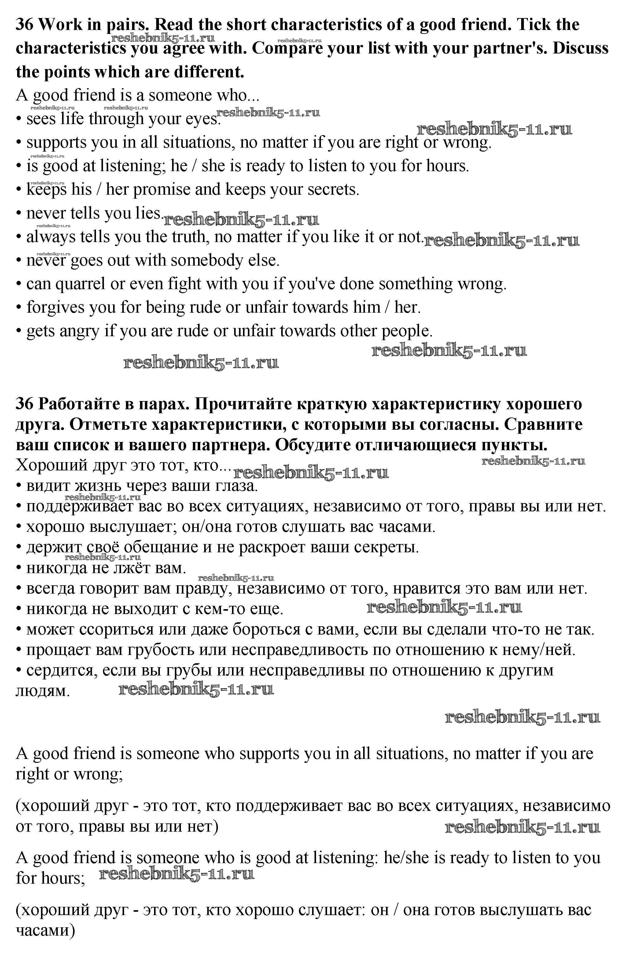 Готовая домашняя работа с ответами по Английскому языку за 9 класс Биболетова, Бабушис, Кларк, Морозова Учебник УМК Титул 2014 ФГОС - Unit 1 36