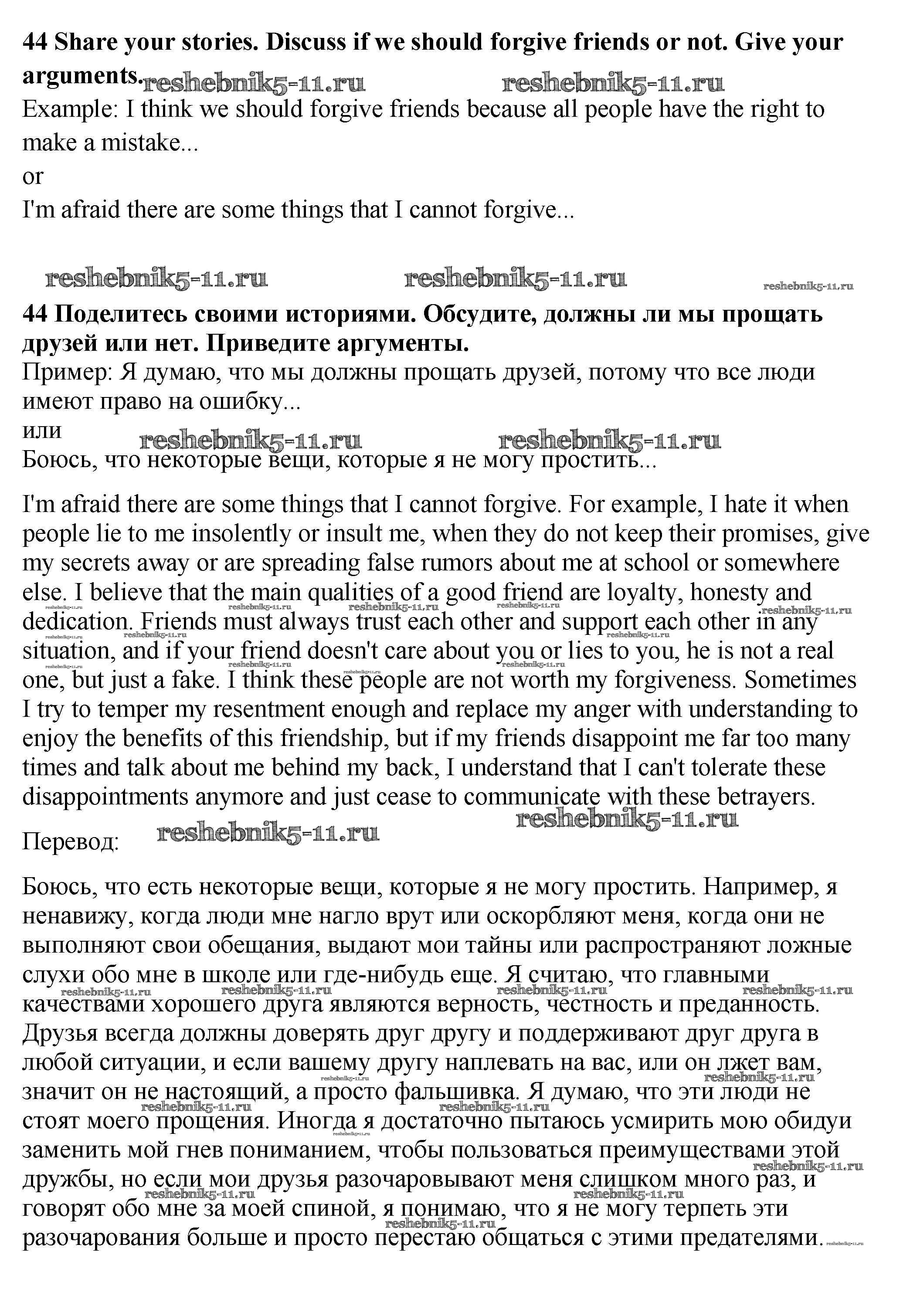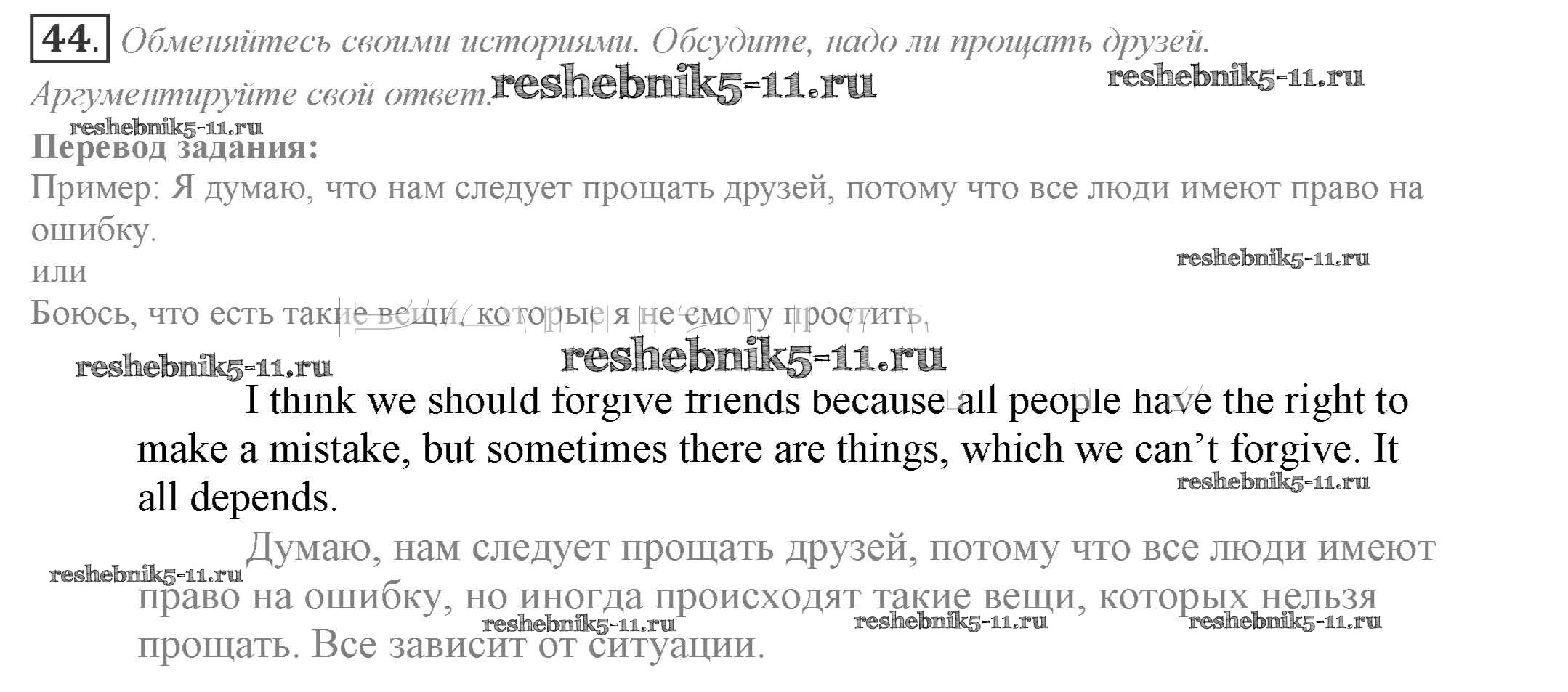 Готовая домашняя работа с ответами по Английскому языку за 9 класс Биболетова, Бабушис, Кларк, Морозова Учебник УМК Титул 2014 ФГОС - Unit 1 44