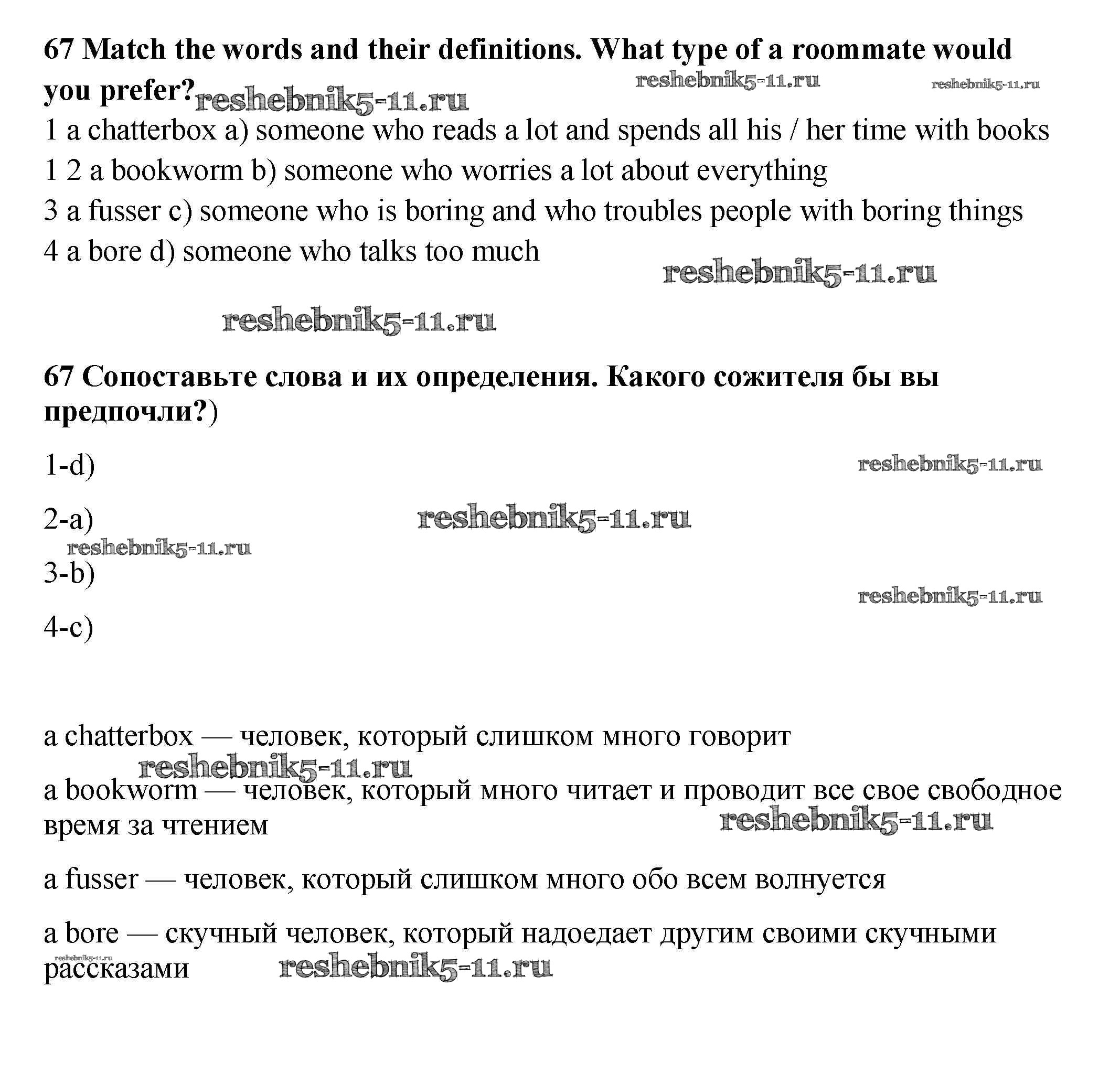 Готовая домашняя работа с ответами по Английскому языку за 9 класс Биболетова, Бабушис, Кларк, Морозова Учебник УМК Титул 2014 ФГОС - Unit 1 67