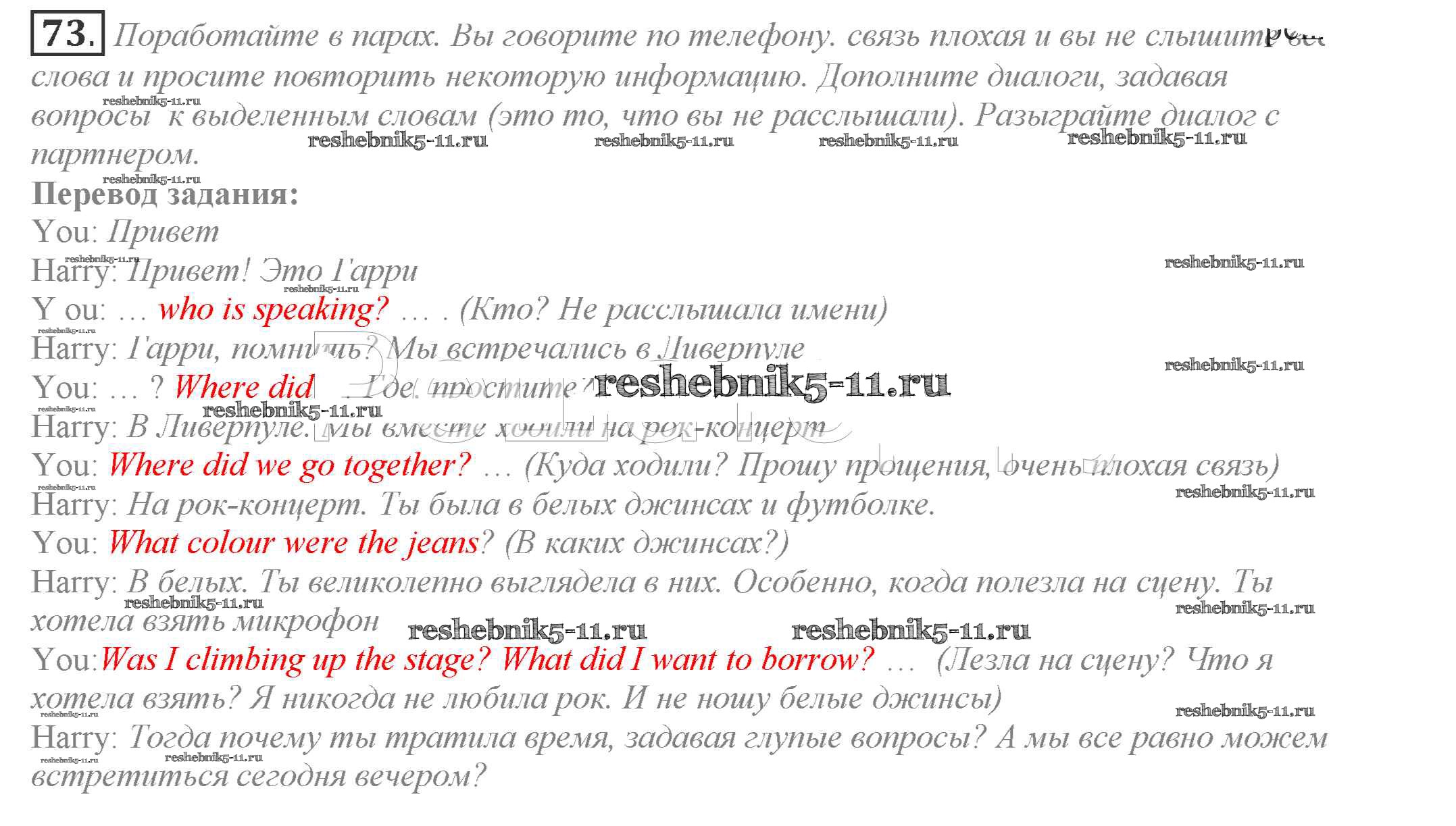 Готовая домашняя работа с ответами по Английскому языку за 9 класс Биболетова, Бабушис, Кларк, Морозова Учебник УМК Титул 2014 ФГОС - Unit 1 73
