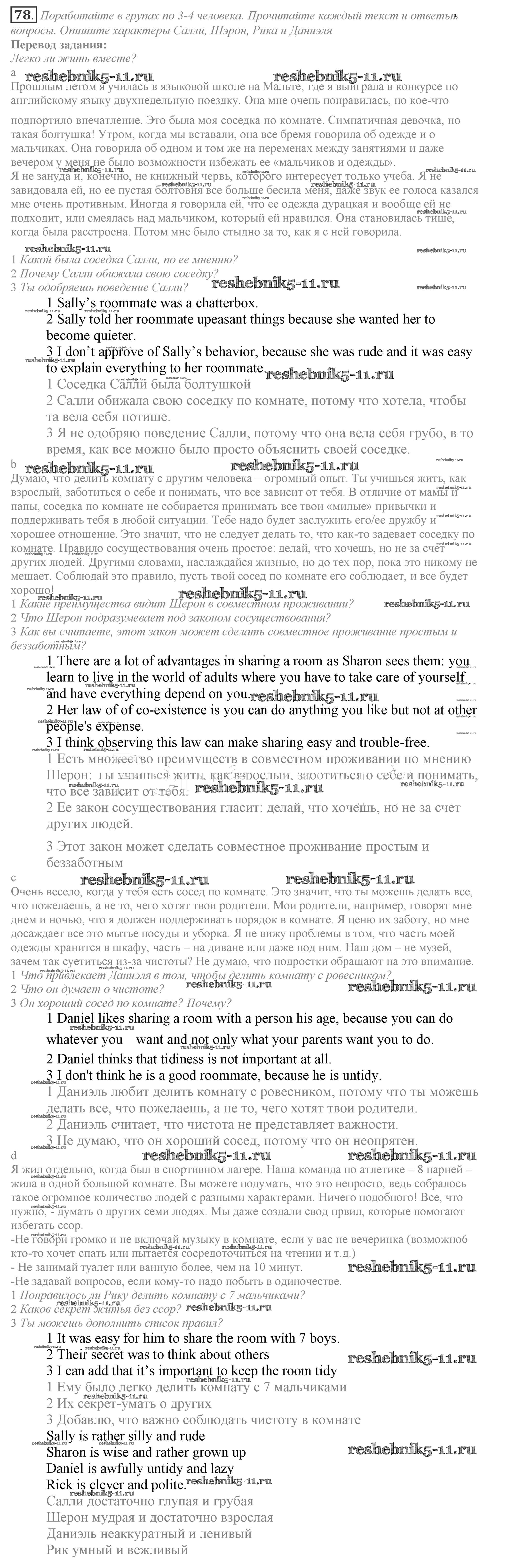 Готовая домашняя работа с ответами по Английскому языку за 9 класс Биболетова, Бабушис, Кларк, Морозова Учебник УМК Титул 2014 ФГОС - Unit 1 78