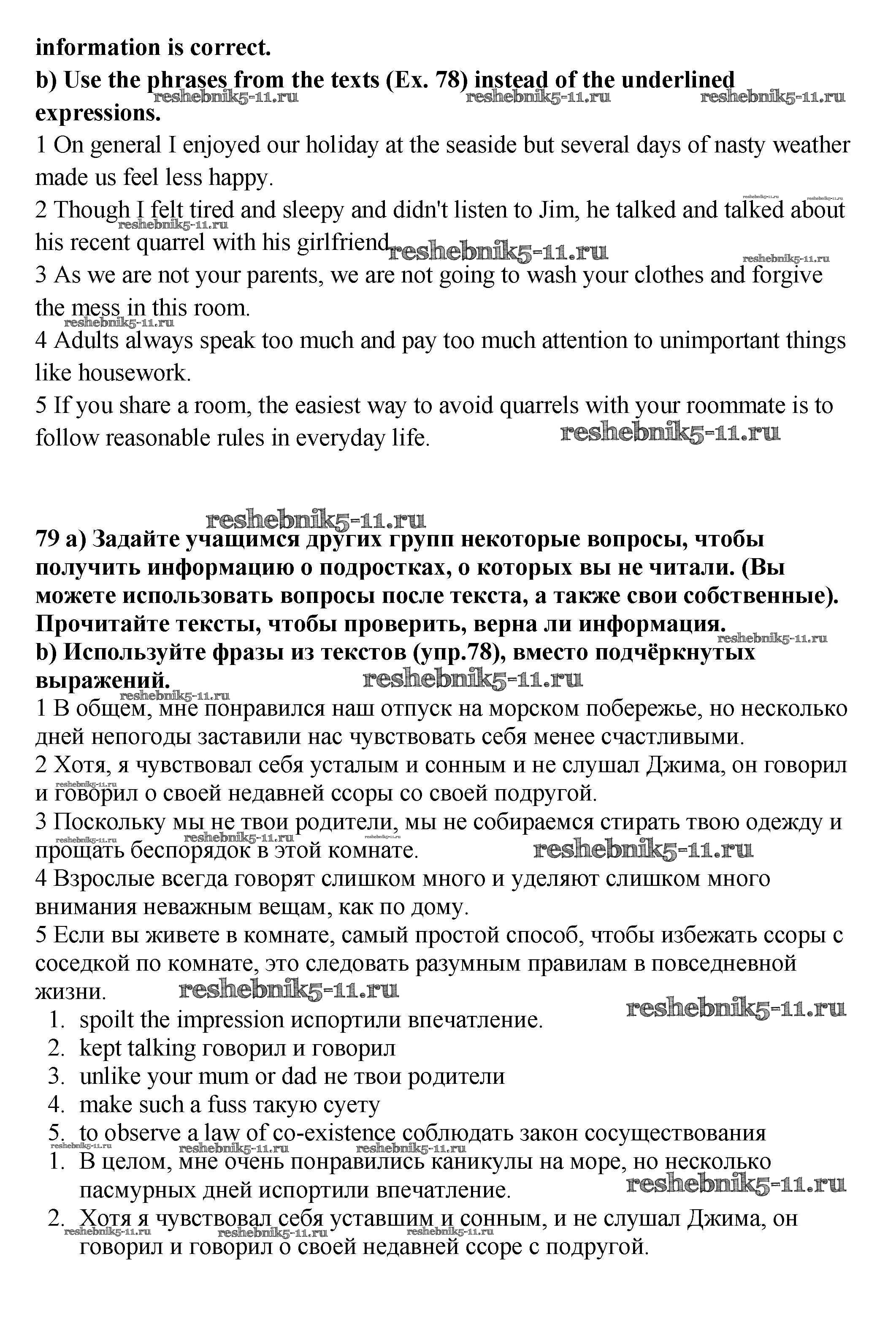 Готовая домашняя работа с ответами по Английскому языку за 9 класс Биболетова, Бабушис, Кларк, Морозова Учебник УМК Титул 2014 ФГОС - Unit 1 79