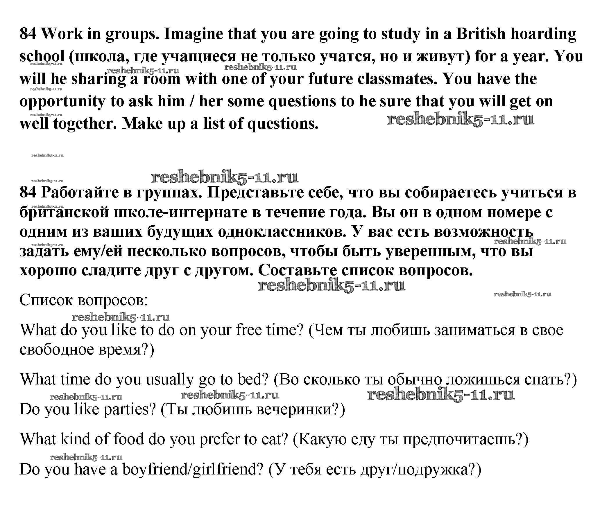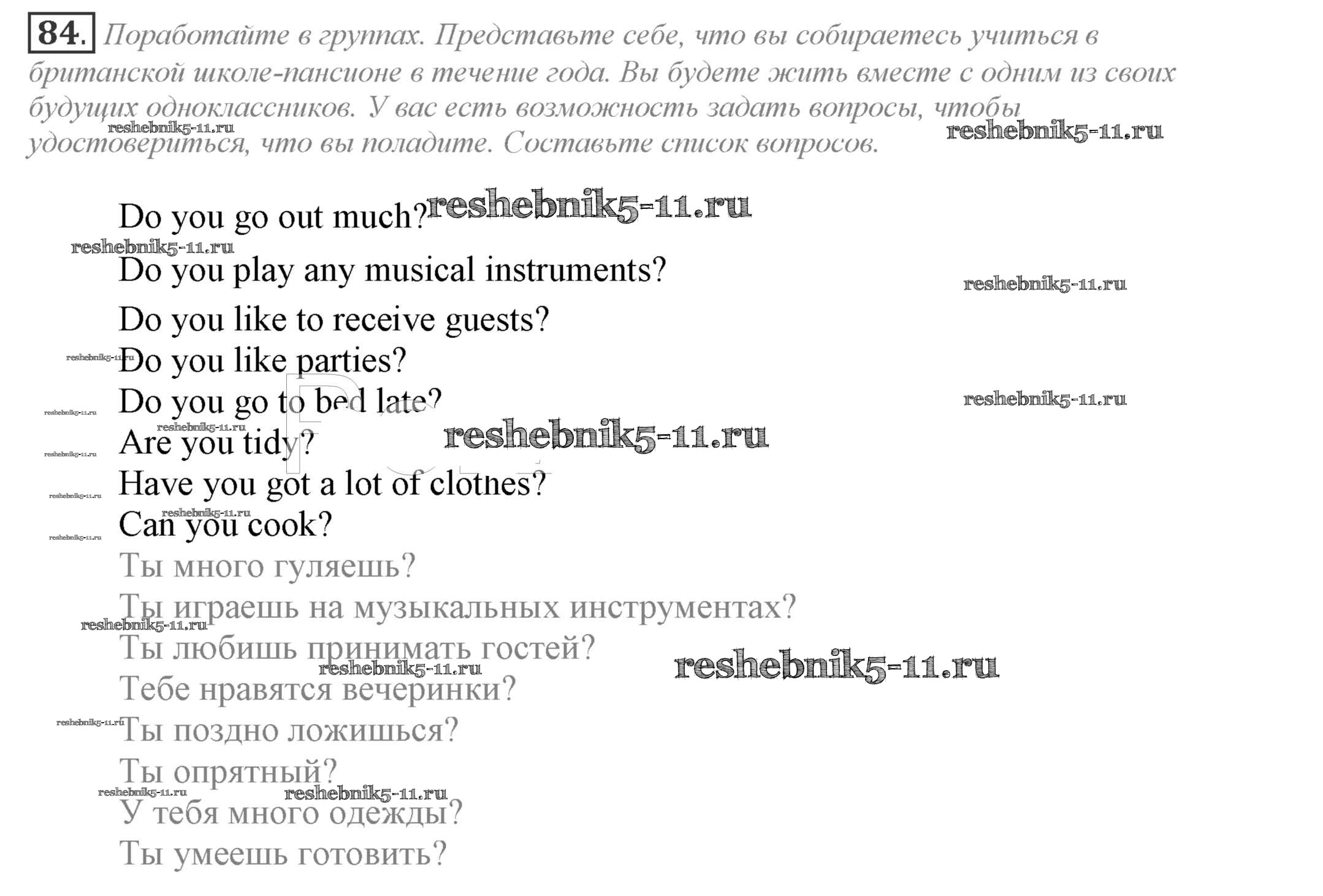 Готовая домашняя работа с ответами по Английскому языку за 9 класс Биболетова, Бабушис, Кларк, Морозова Учебник УМК Титул 2014 ФГОС - Unit 1 84
