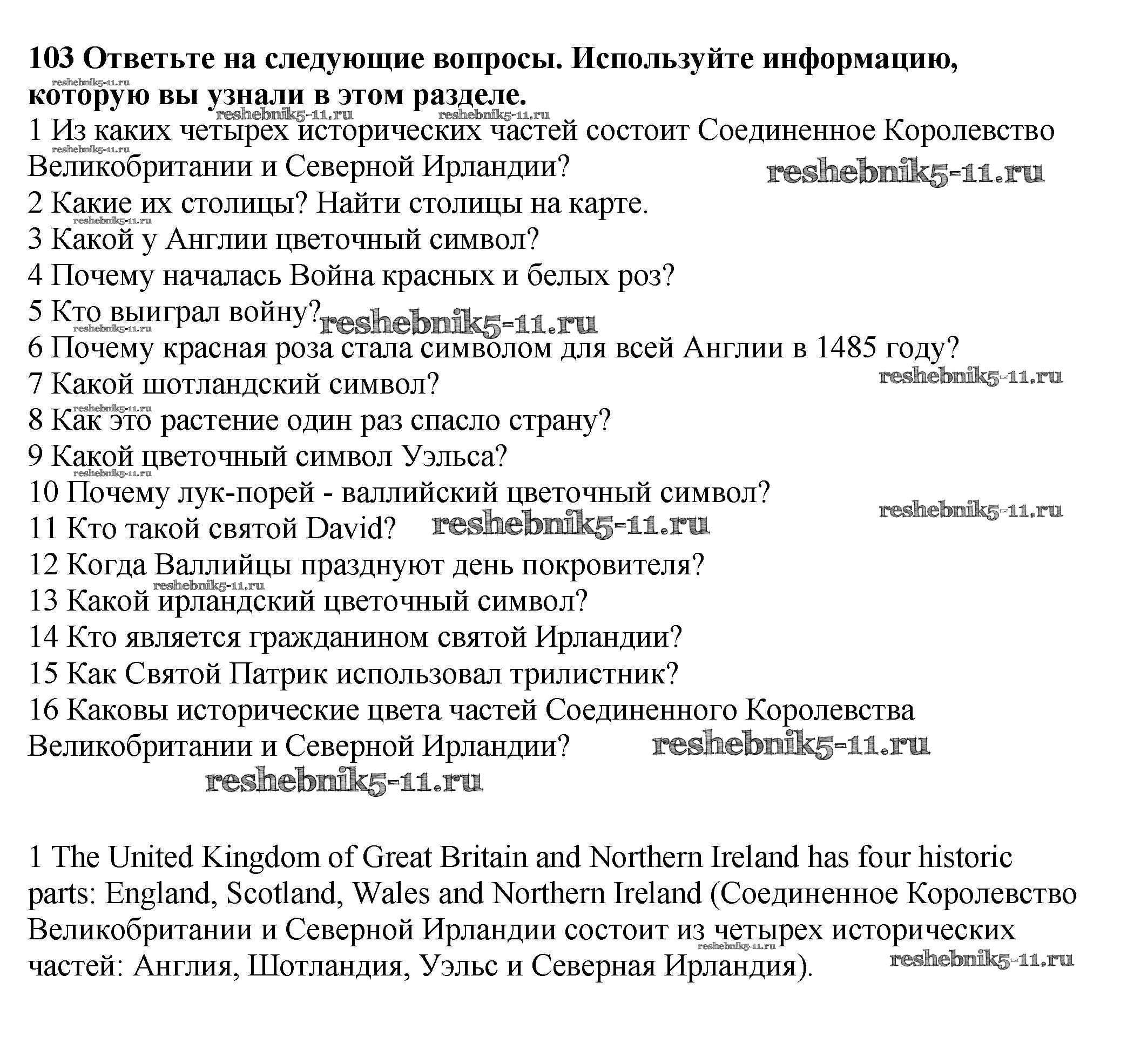 Готовая домашняя работа с ответами по Английскому языку за 9 класс Биболетова, Бабушис, Кларк, Морозова Учебник УМК Титул 2014 ФГОС - Unit 2 103
