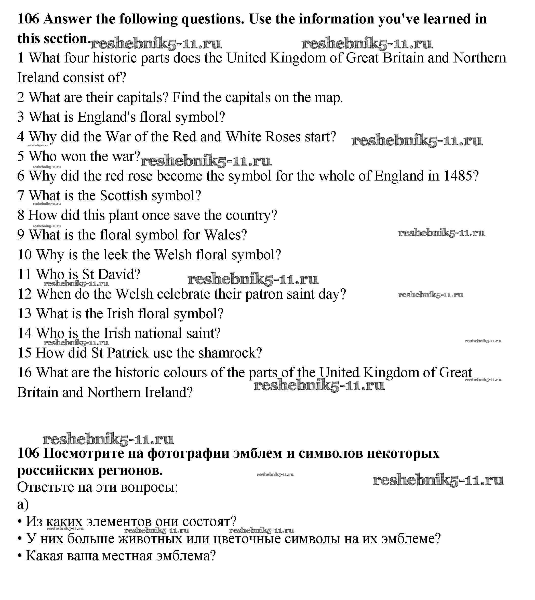 Готовая домашняя работа с ответами по Английскому языку за 9 класс Биболетова, Бабушис, Кларк, Морозова Учебник УМК Титул 2014 ФГОС - Unit 2 106