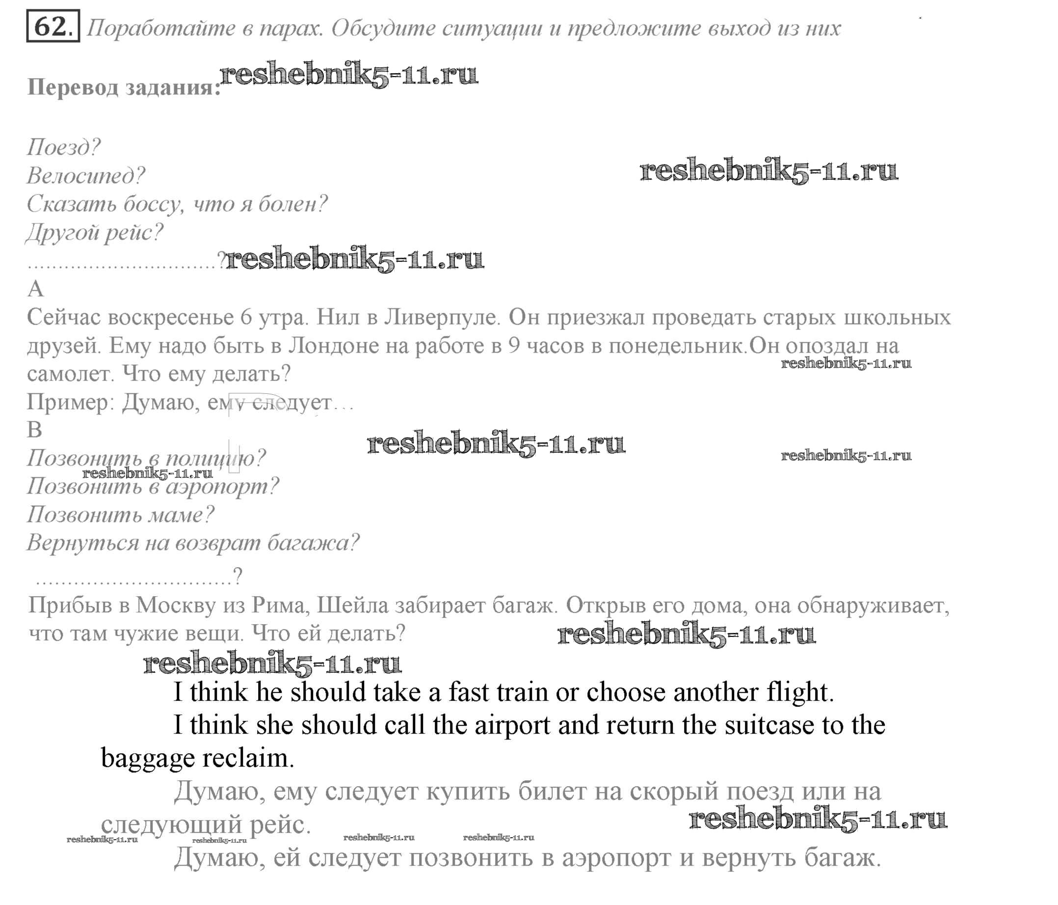 Готовая домашняя работа с ответами по Английскому языку за 9 класс Биболетова, Бабушис, Кларк, Морозова Учебник УМК Титул 2014 ФГОС - Unit 2 62