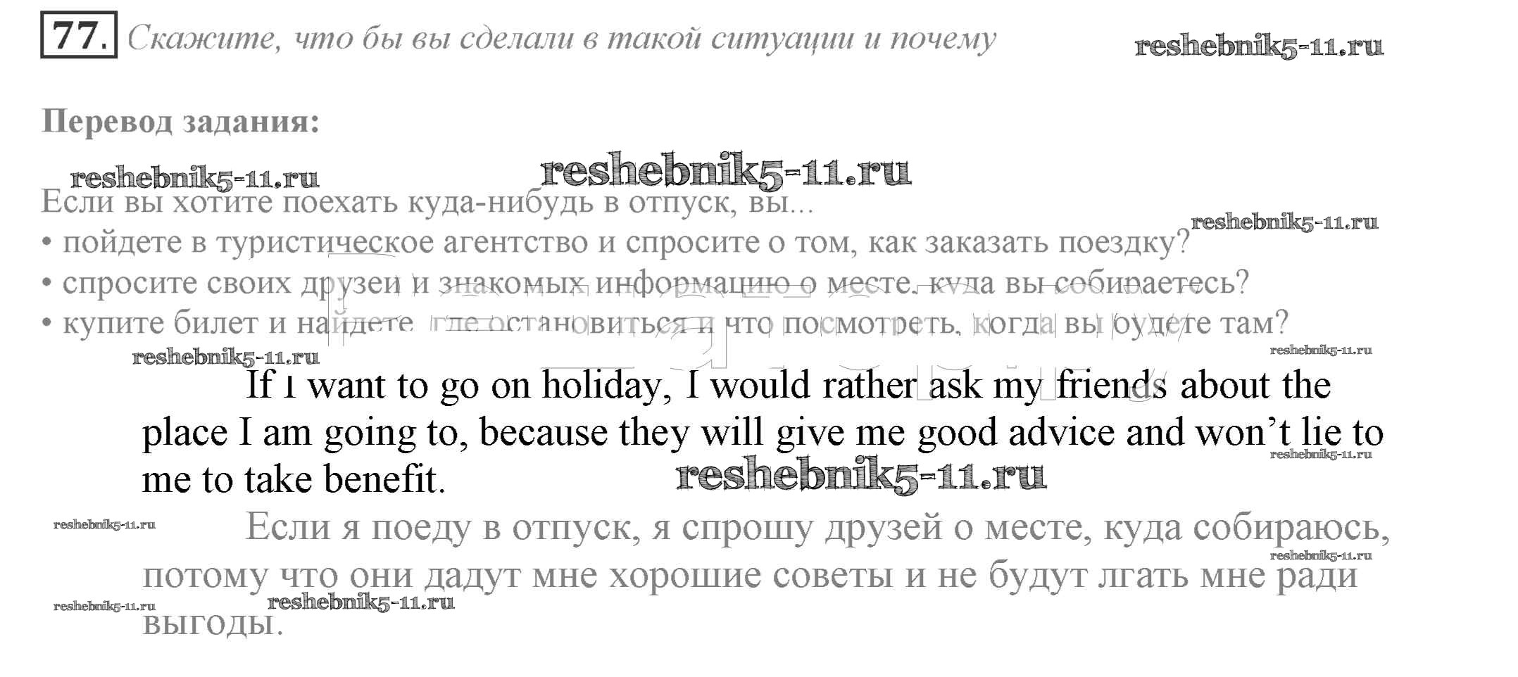 Готовая домашняя работа с ответами по Английскому языку за 9 класс Биболетова, Бабушис, Кларк, Морозова Учебник УМК Титул 2014 ФГОС - Unit 2 77