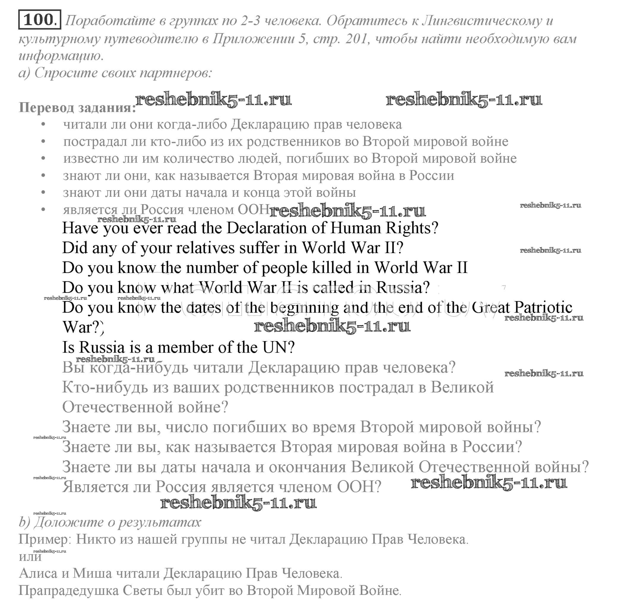 Готовая домашняя работа с ответами по Английскому языку за 9 класс Биболетова, Бабушис, Кларк, Морозова Учебник УМК Титул 2014 ФГОС - Unit 3 100