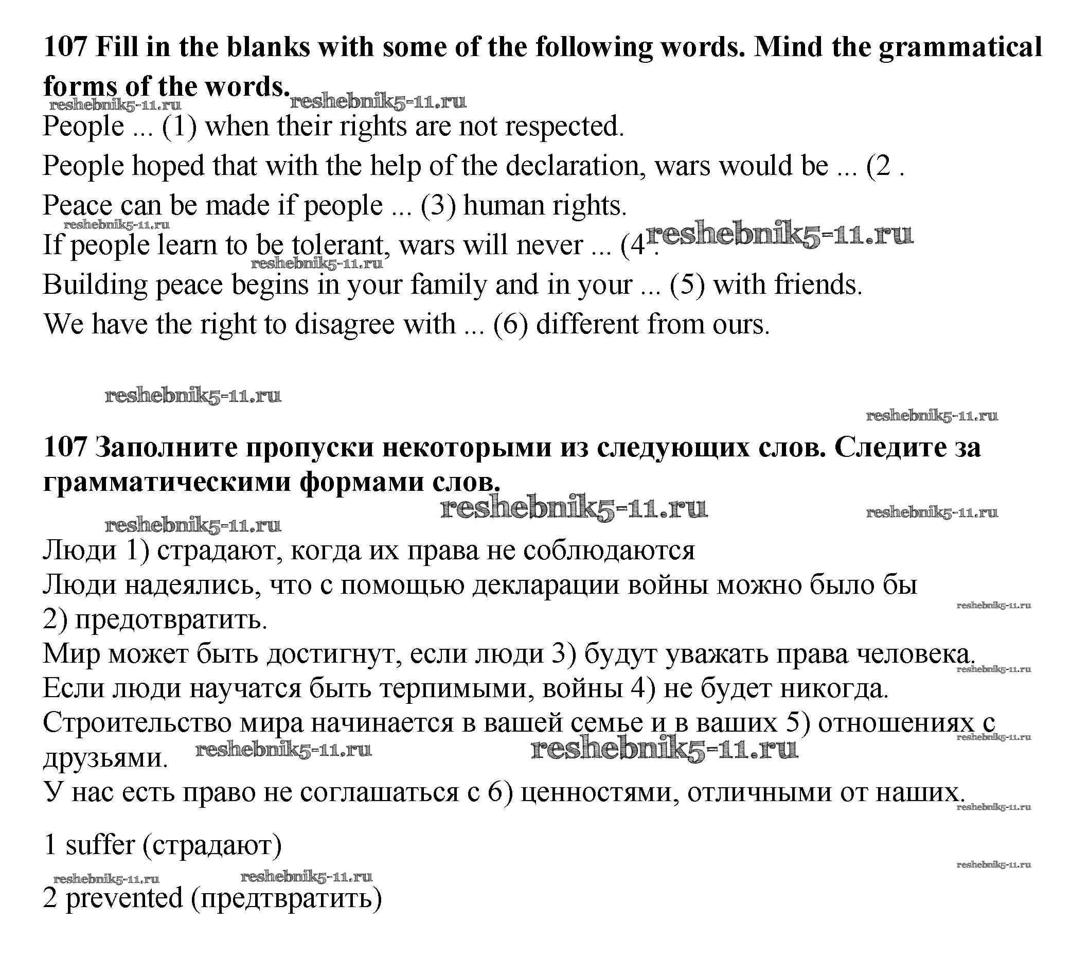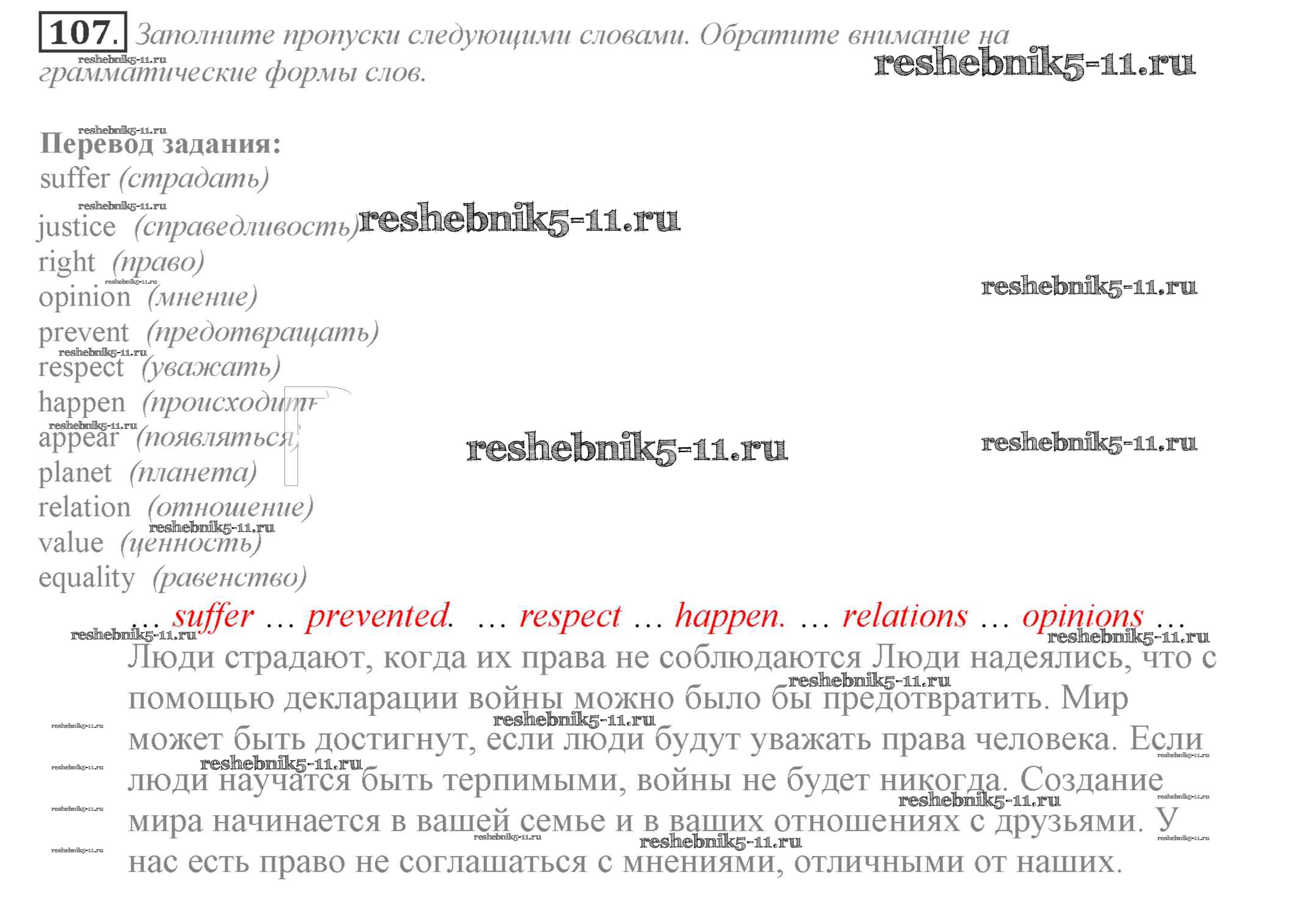 Готовая домашняя работа с ответами по Английскому языку за 9 класс Биболетова, Бабушис, Кларк, Морозова Учебник УМК Титул 2014 ФГОС - Unit 3 107