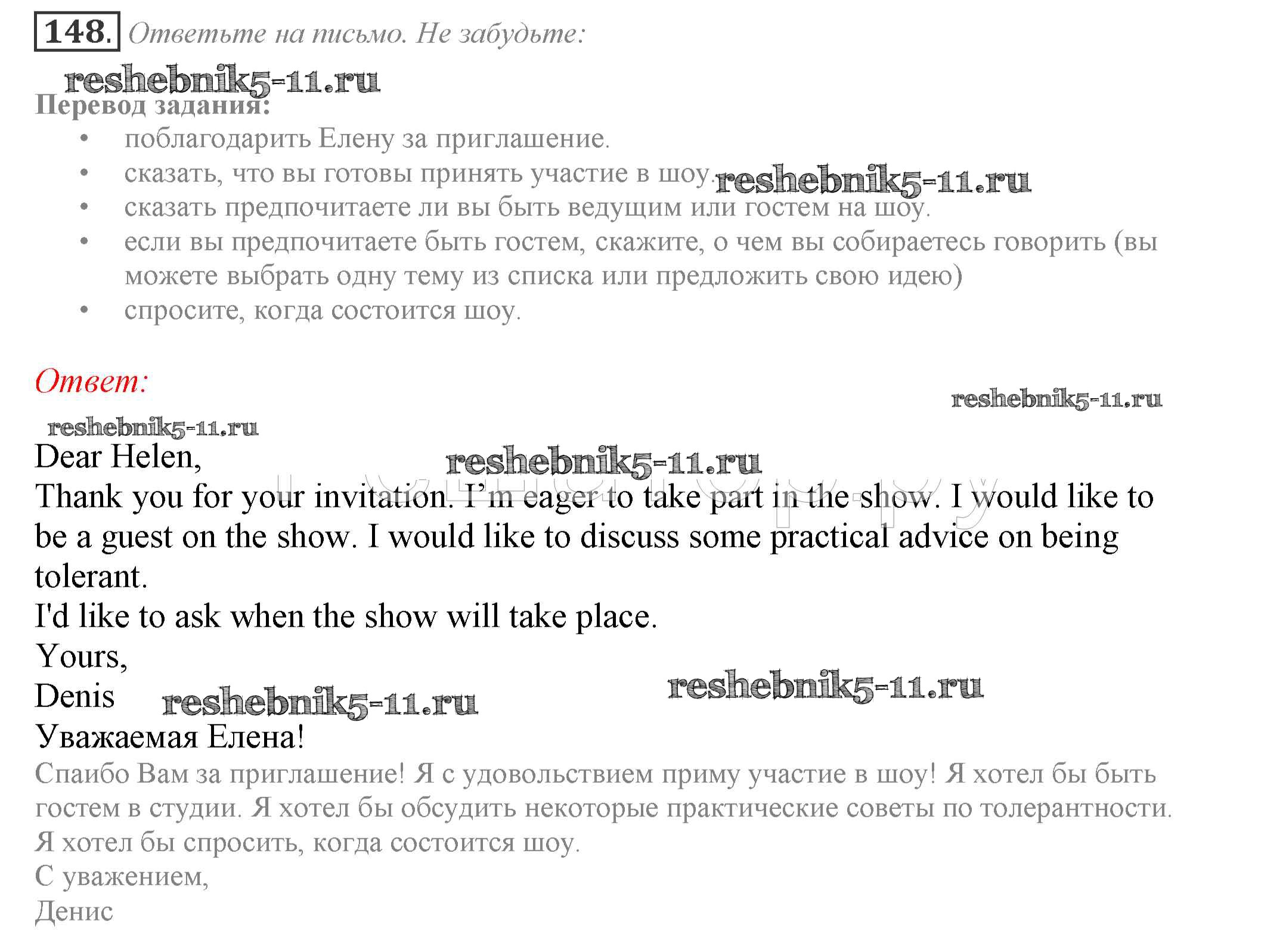 Готовая домашняя работа с ответами по Английскому языку за 9 класс Биболетова, Бабушис, Кларк, Морозова Учебник УМК Титул 2014 ФГОС - Unit 3 148