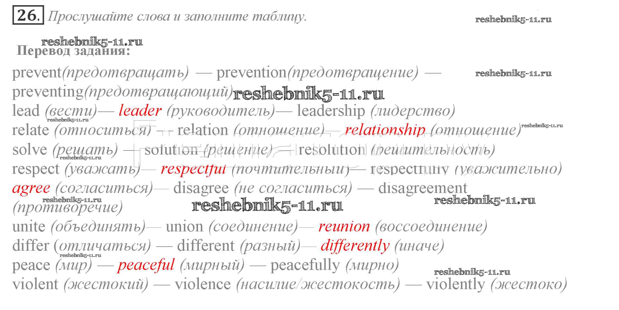 Готовая домашняя работа с ответами по Английскому языку за 9 класс Биболетова, Бабушис, Кларк, Морозова Учебник УМК Титул 2014 ФГОС - Unit 3 26