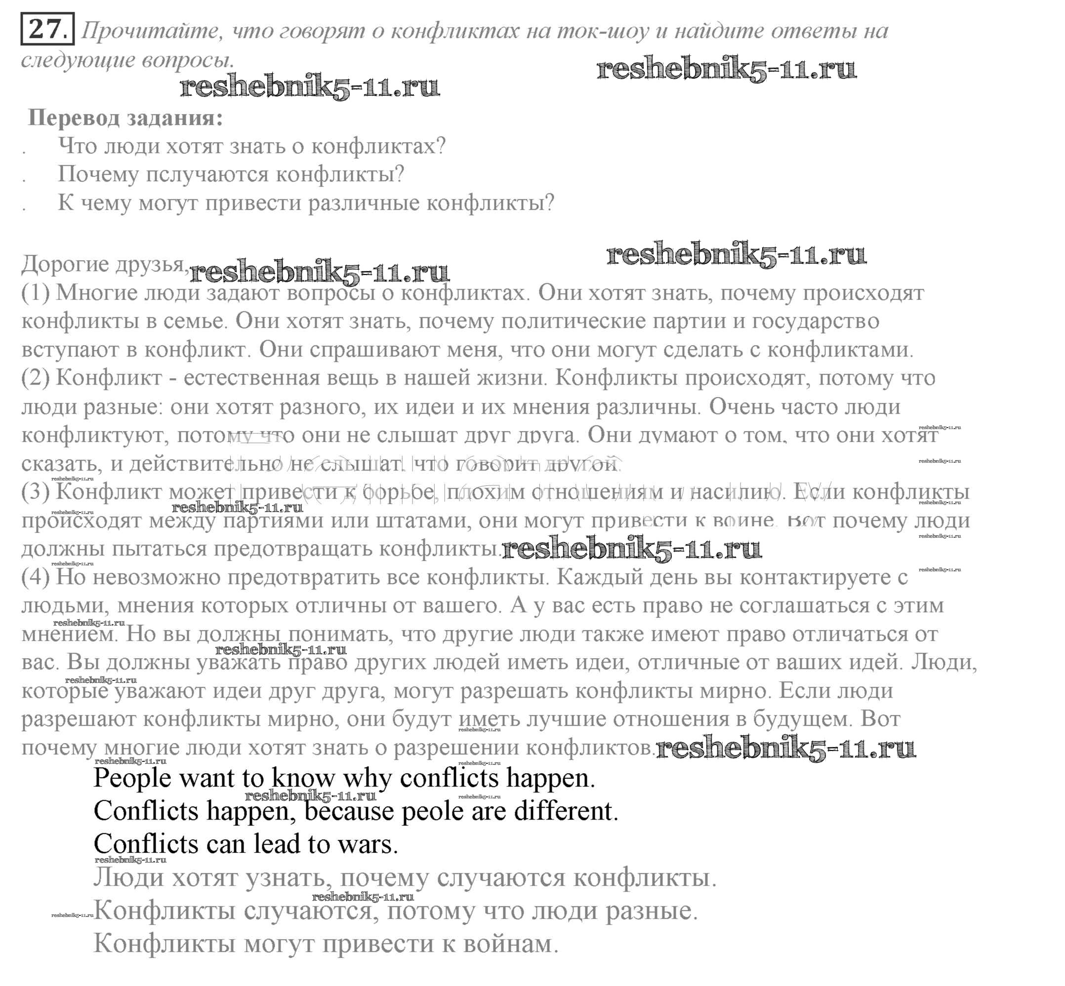 Готовая домашняя работа с ответами по Английскому языку за 9 класс Биболетова, Бабушис, Кларк, Морозова Учебник УМК Титул 2014 ФГОС - Unit 3 27