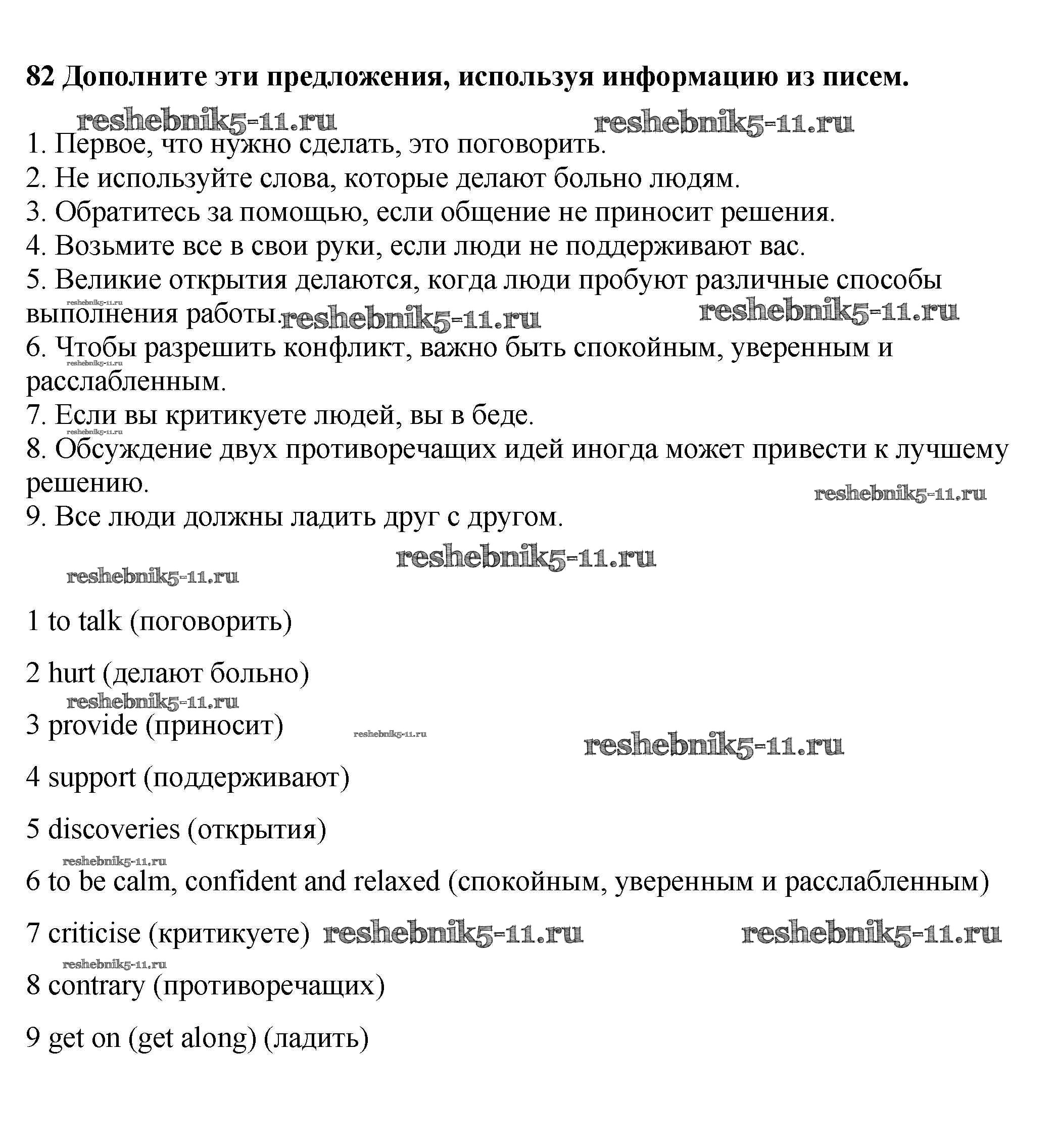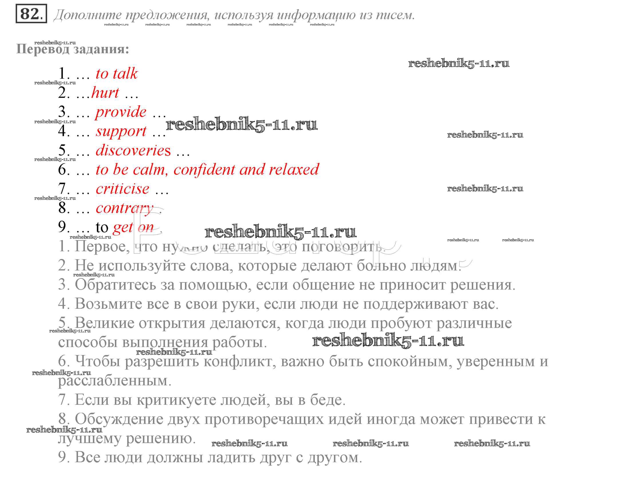 Готовая домашняя работа с ответами по Английскому языку за 9 класс Биболетова, Бабушис, Кларк, Морозова Учебник УМК Титул 2014 ФГОС - Unit 3 82