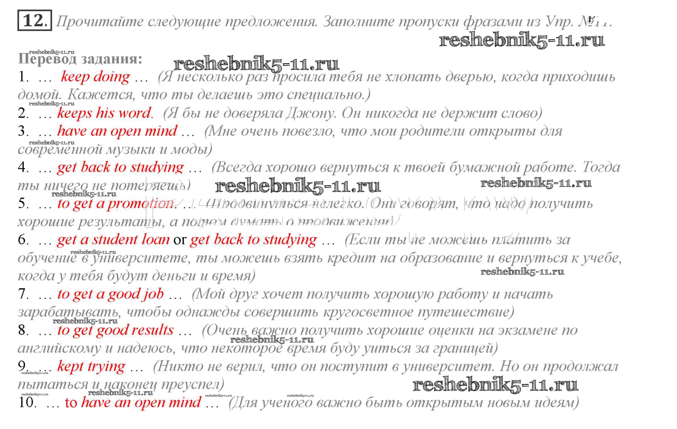 Готовая домашняя работа с ответами по Английскому языку за 9 класс Биболетова, Бабушис, Кларк, Морозова Учебник УМК Титул 2014 ФГОС - Unit 4 12