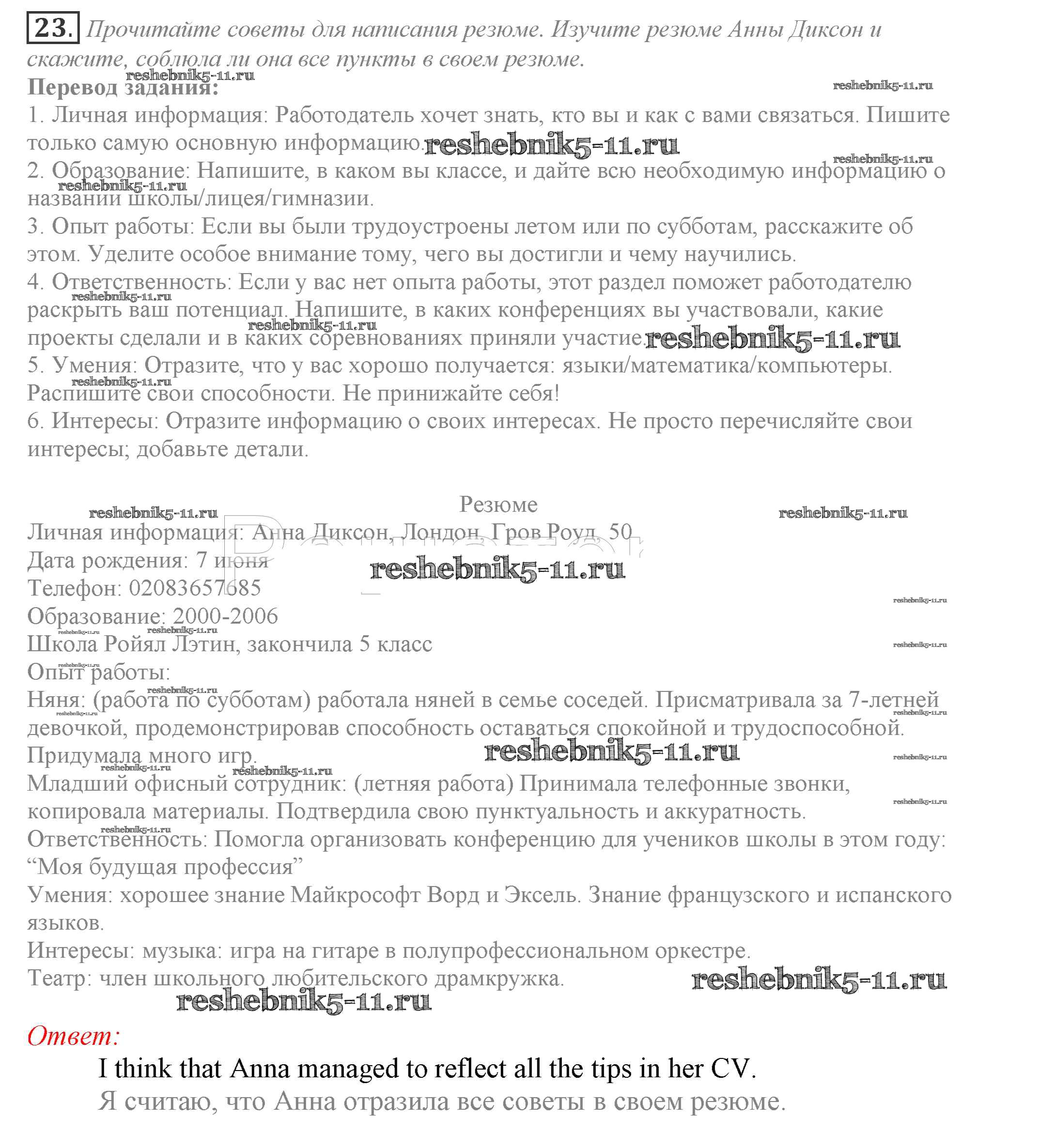 Готовая домашняя работа с ответами по Английскому языку за 9 класс Биболетова, Бабушис, Кларк, Морозова Учебник УМК Титул 2014 ФГОС - Unit 4 23