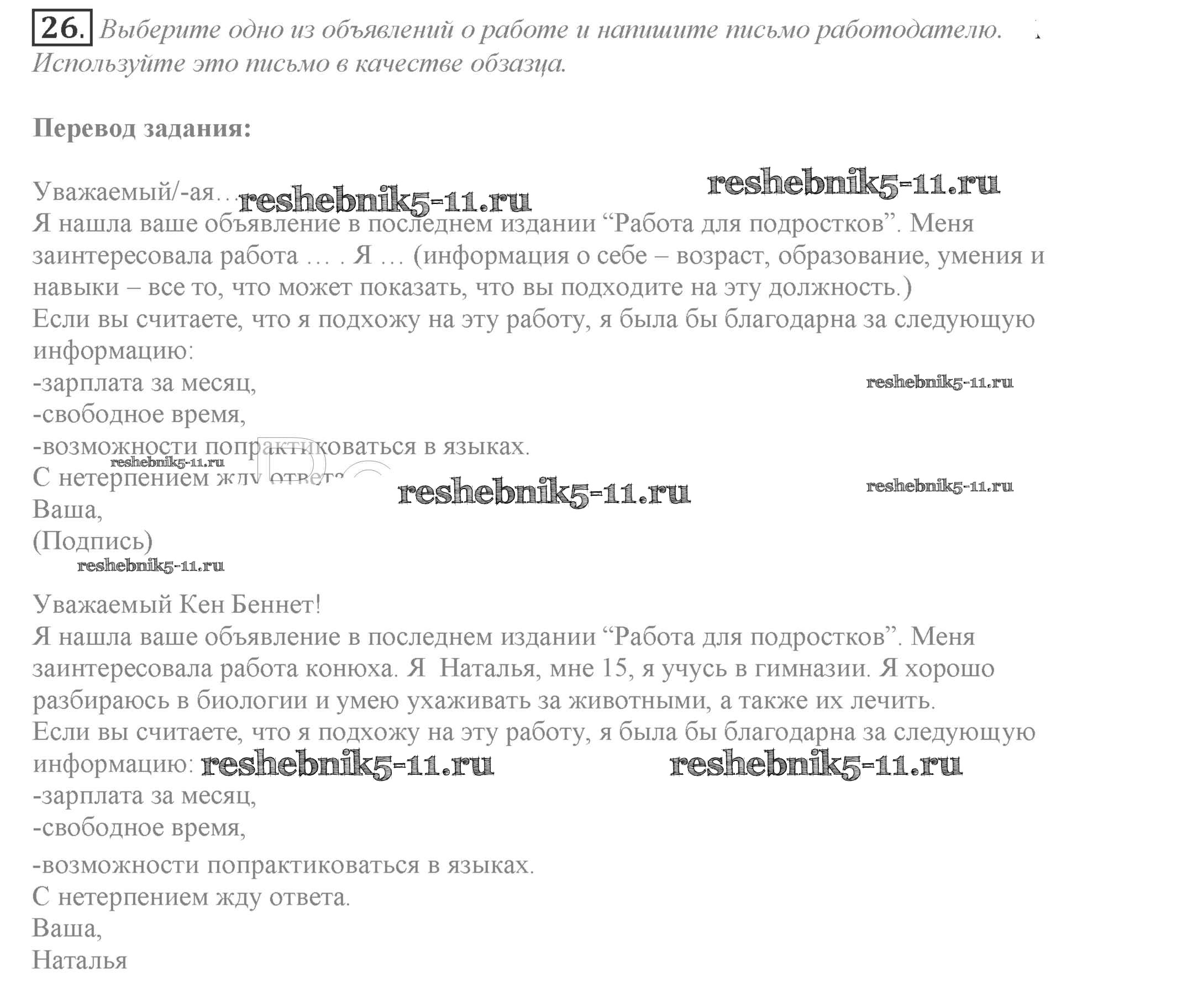 Готовая домашняя работа с ответами по Английскому языку за 9 класс Биболетова, Бабушис, Кларк, Морозова Учебник УМК Титул 2014 ФГОС - Unit 4 26