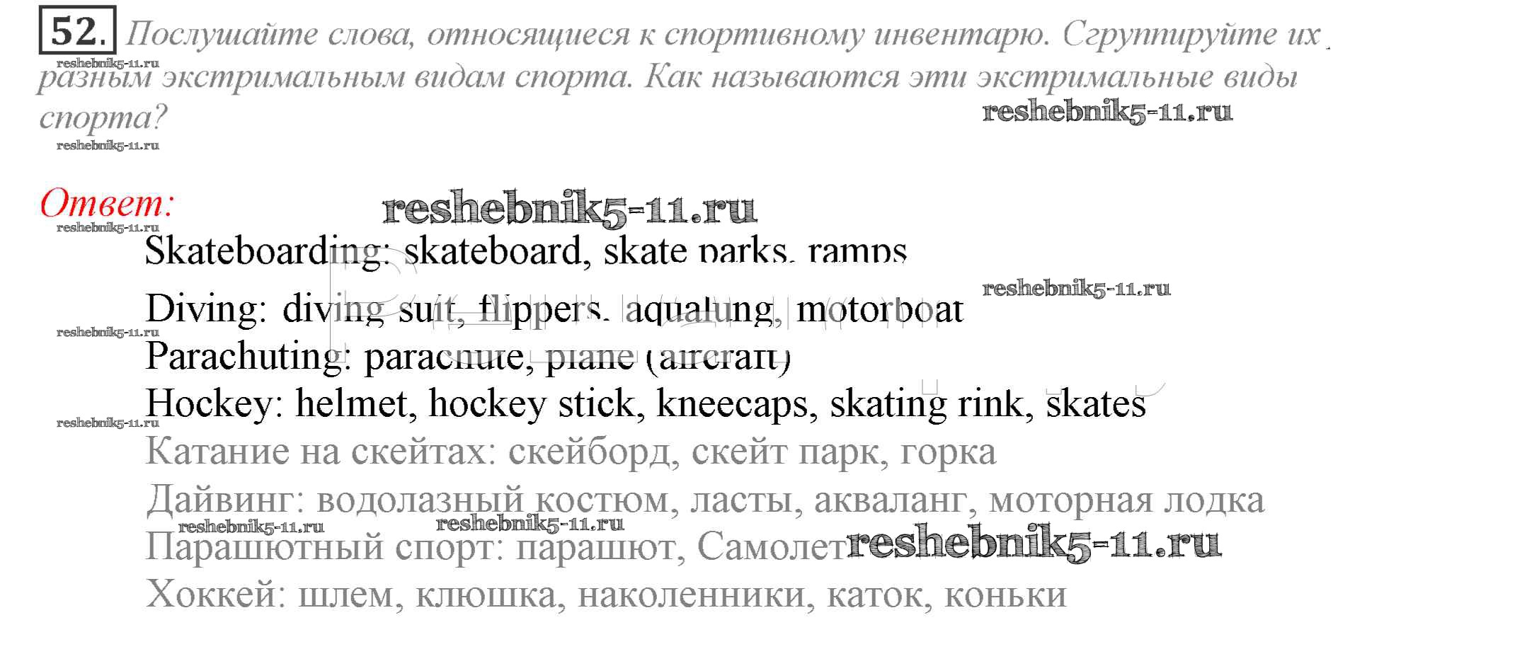 Готовая домашняя работа с ответами по Английскому языку за 9 класс Биболетова, Бабушис, Кларк, Морозова Учебник УМК Титул 2014 ФГОС - Unit 4 52