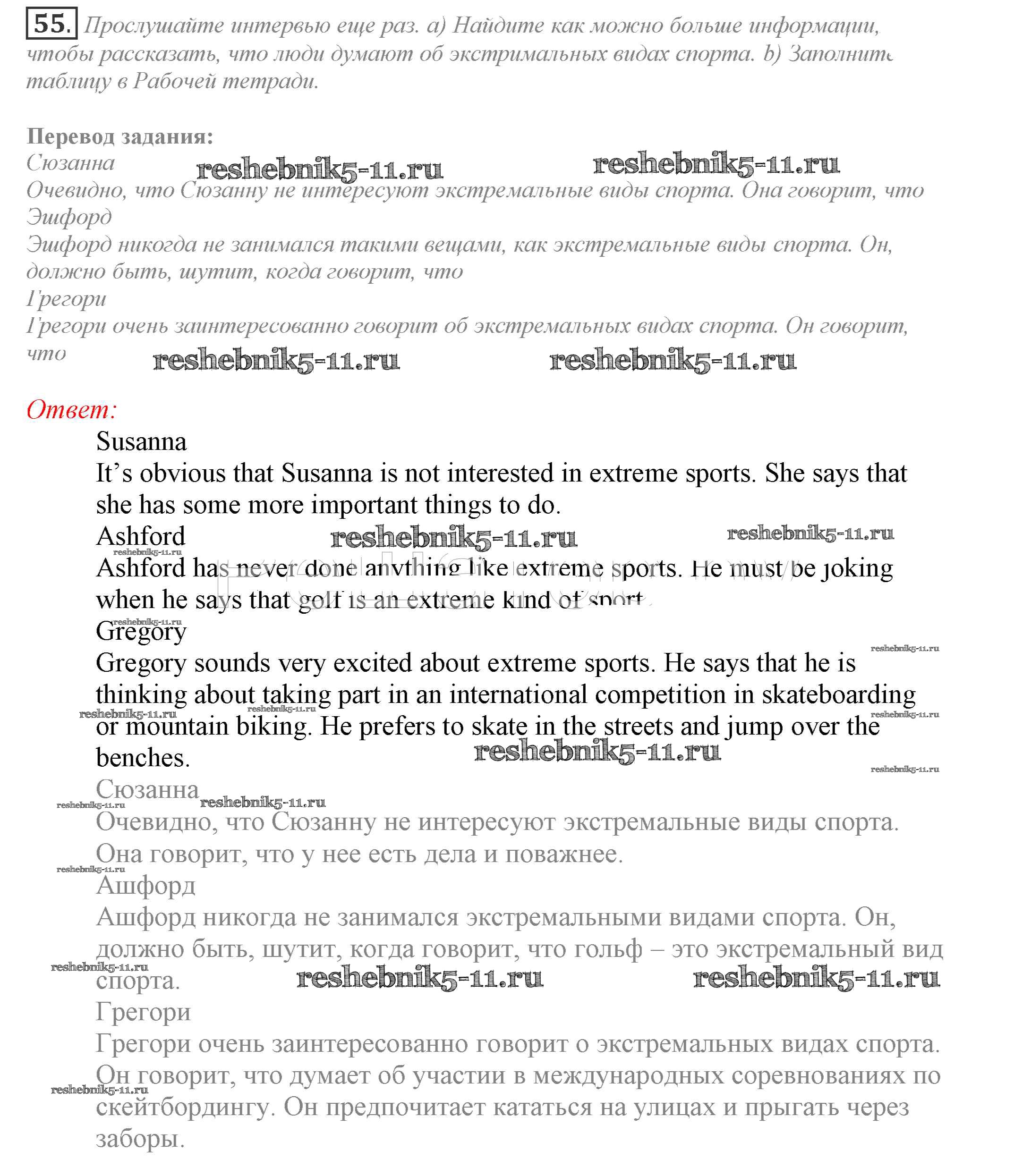 Готовая домашняя работа с ответами по Английскому языку за 9 класс Биболетова, Бабушис, Кларк, Морозова Учебник УМК Титул 2014 ФГОС - Unit 4 55