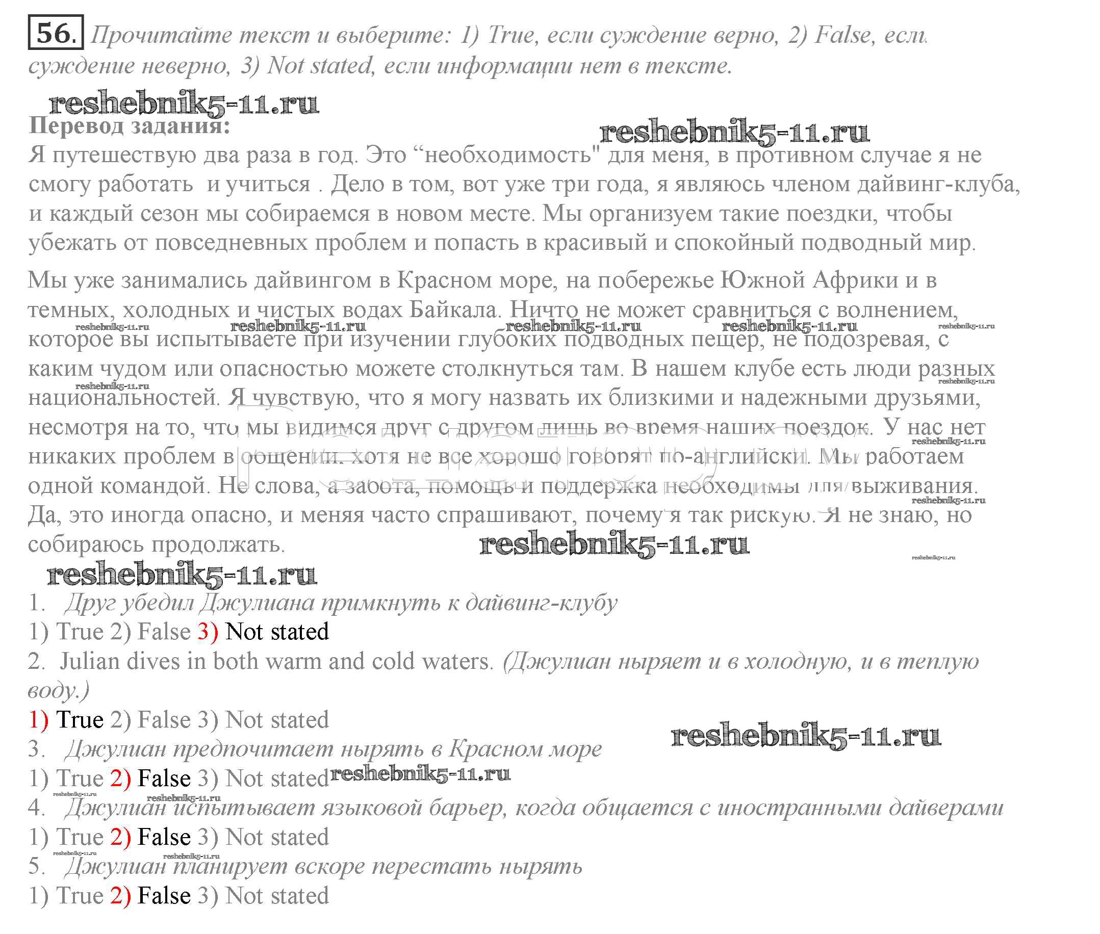 Готовая домашняя работа с ответами по Английскому языку за 9 класс Биболетова, Бабушис, Кларк, Морозова Учебник УМК Титул 2014 ФГОС - Unit 4 56