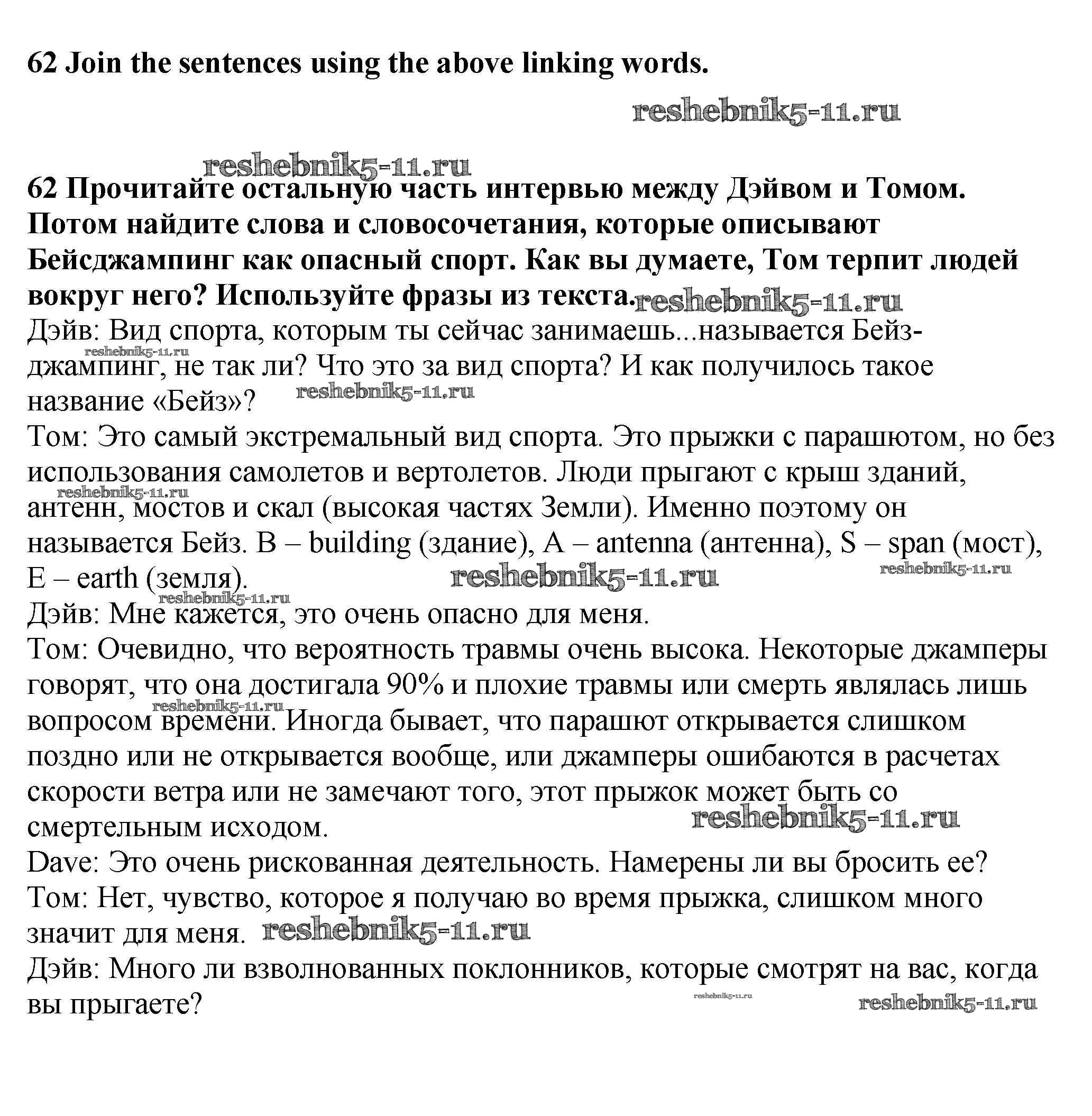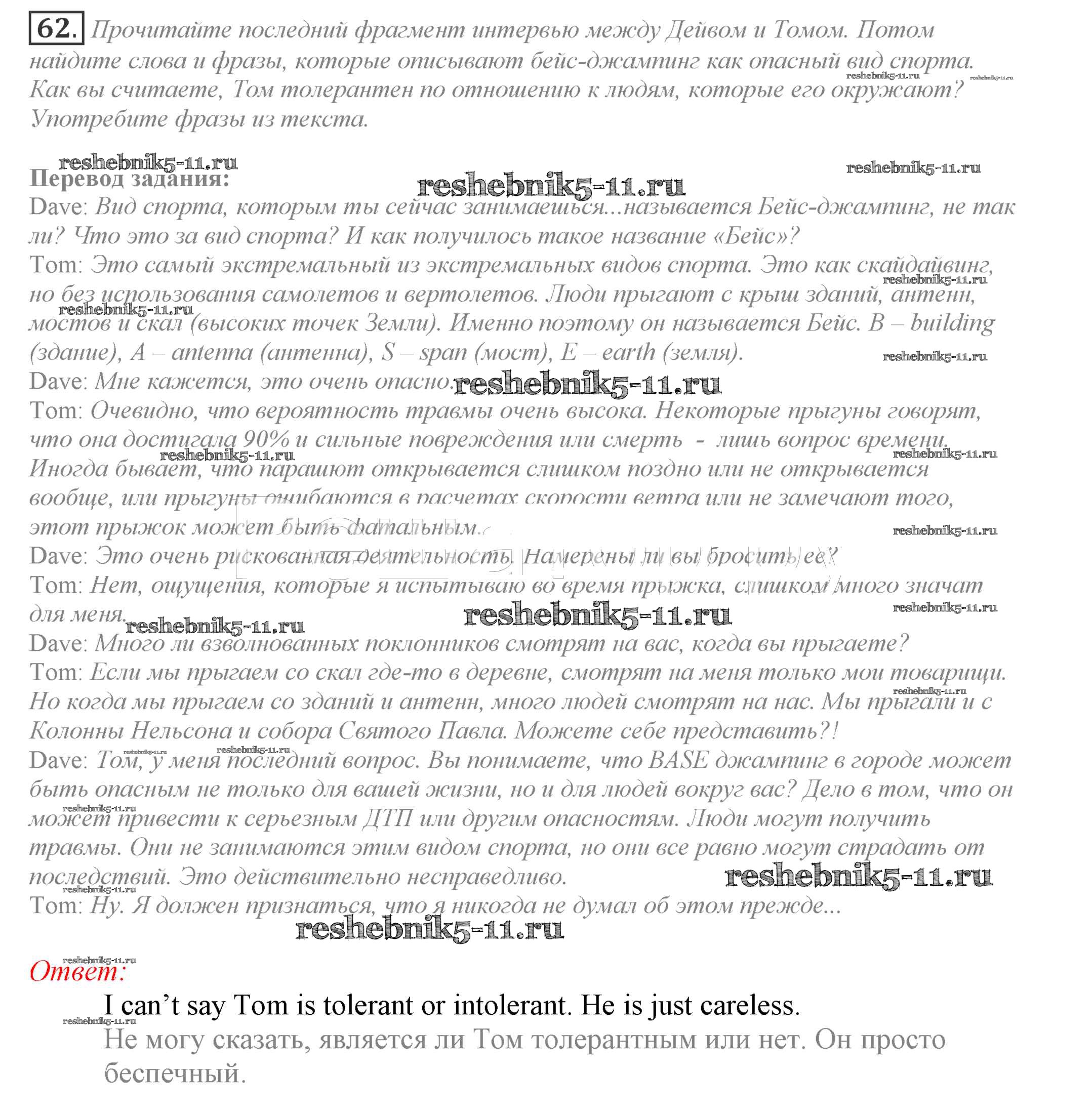 Готовая домашняя работа с ответами по Английскому языку за 9 класс Биболетова, Бабушис, Кларк, Морозова Учебник УМК Титул 2014 ФГОС - Unit 4 62