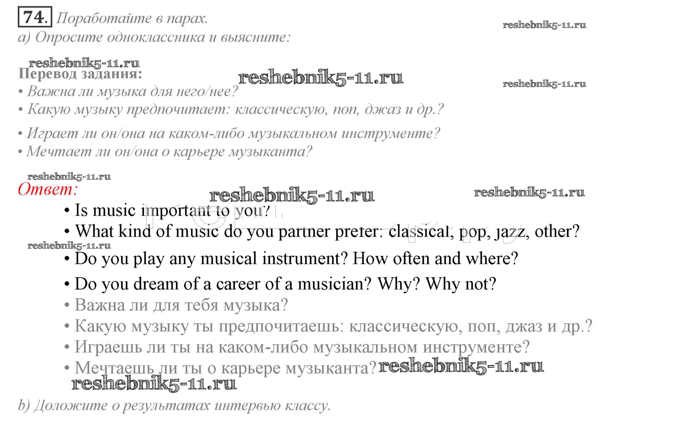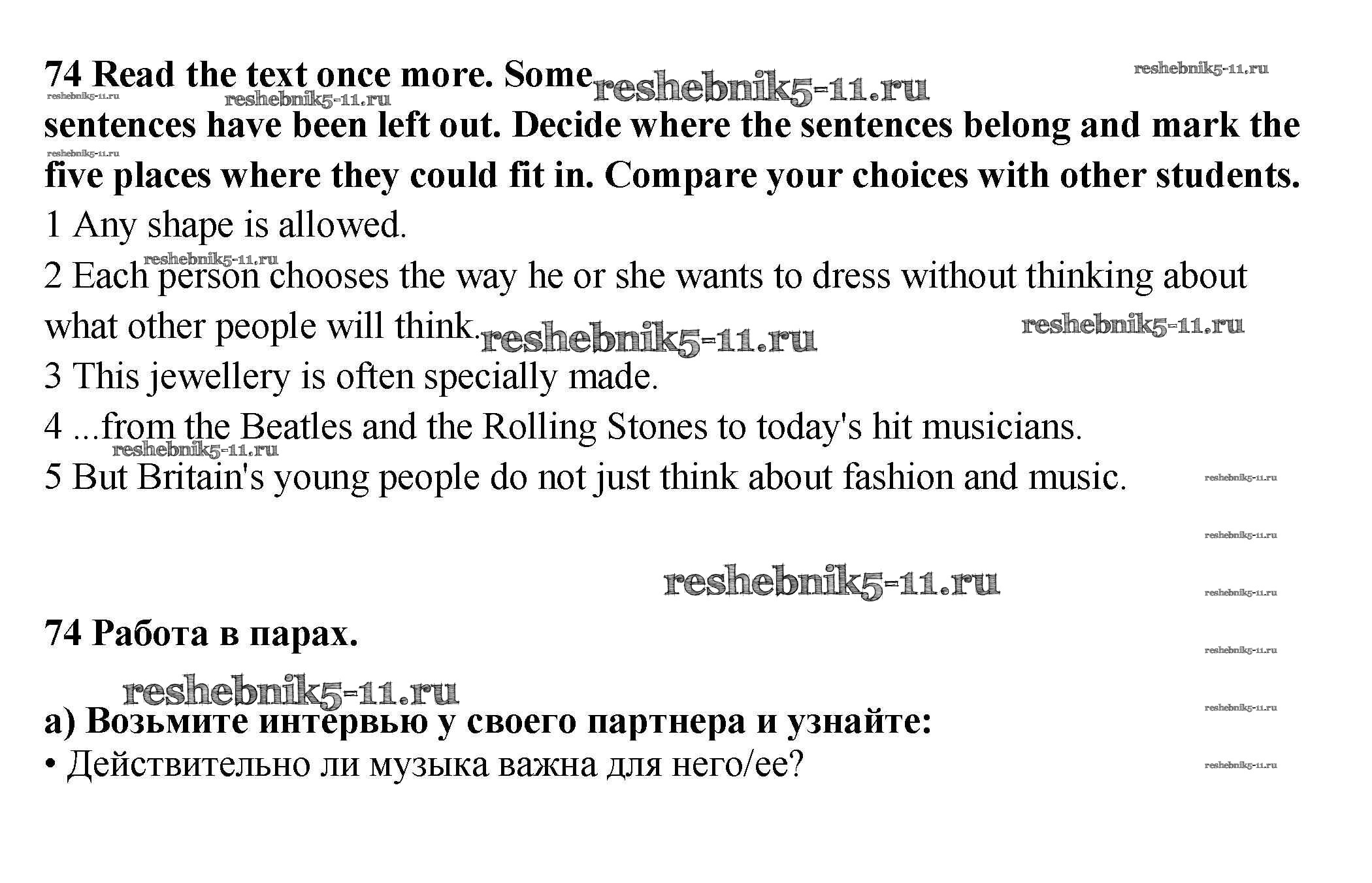 Готовая домашняя работа с ответами по Английскому языку за 9 класс Биболетова, Бабушис, Кларк, Морозова Учебник УМК Титул 2014 ФГОС - Unit 4 74