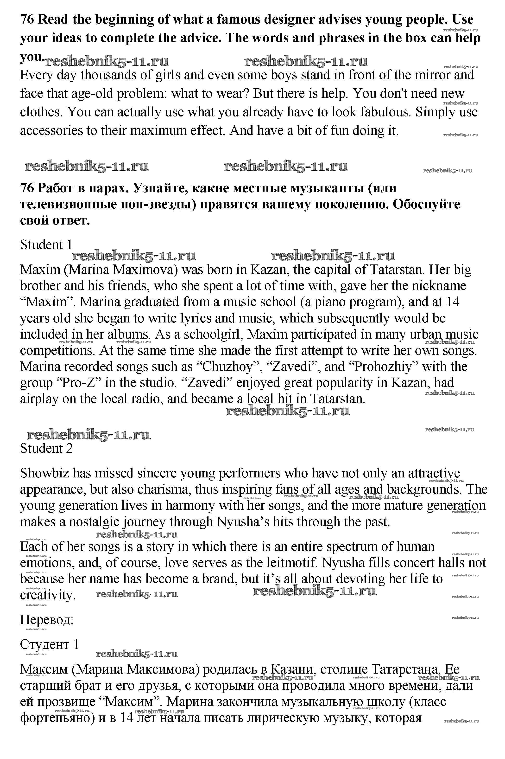 Готовая домашняя работа с ответами по Английскому языку за 9 класс Биболетова, Бабушис, Кларк, Морозова Учебник УМК Титул 2014 ФГОС - Unit 4 76