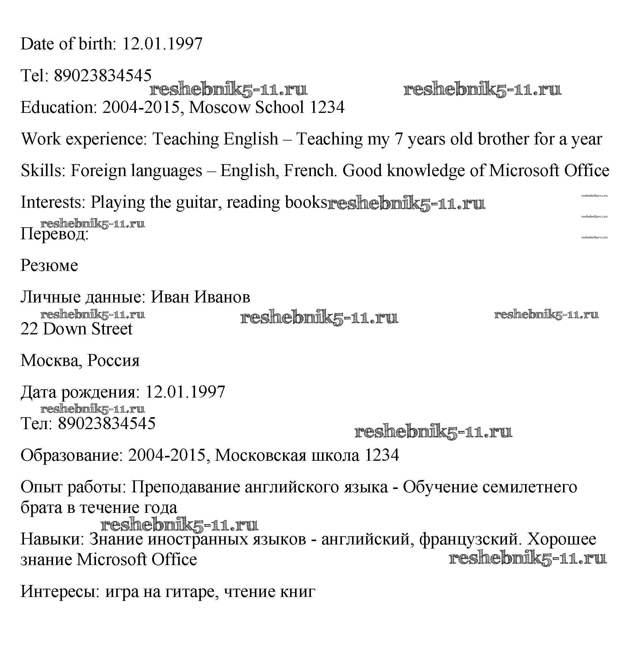 Готовая домашняя работа с ответами по Английскому языку за 9 класс Биболетова, Бабушис, Кларк, Морозова Рабочая тетрадь Enjoy English Часть 1 Титул 2015 ФГОС - Section 1 10