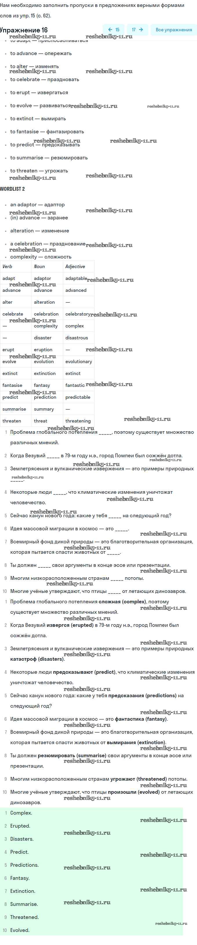 Готовая домашняя работа с ответами по Английскому языку за 9 класс Вербицкая, Нечаева, Твердохлебова Рабочая тетрадь Forward Вентана-граф 2018 ФГОС - Страницы 62