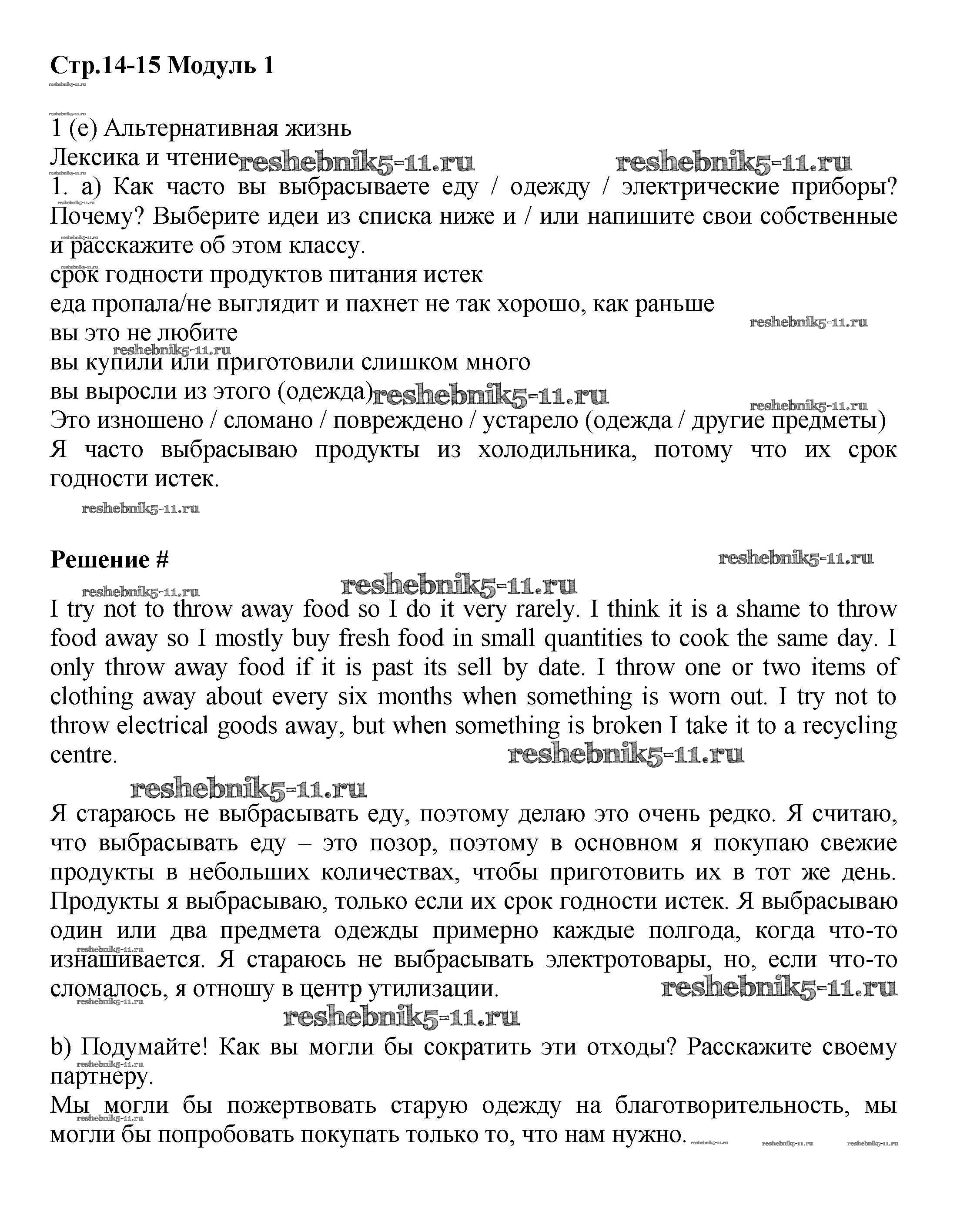 Готовая домашняя работа с ответами по Английскому языку за 9 класс Баранова, Дули, Эванс, Копылова, Мильруд Учебник Starlight Углубленный уровень Просвещение 2017 ФГОС - Module 1. Lifestyles стр.14
