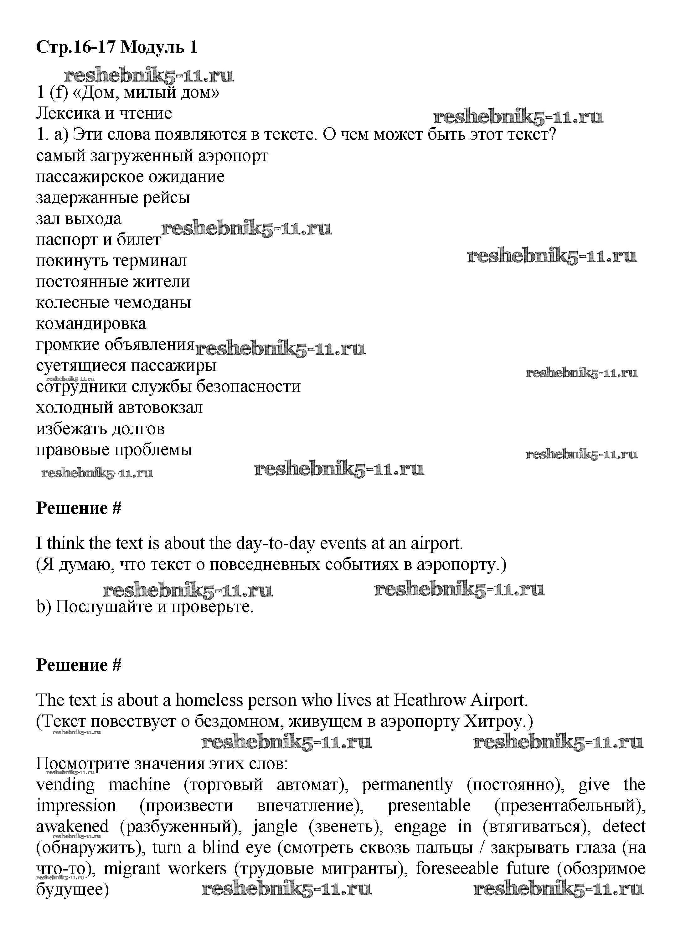Готовая домашняя работа с ответами по Английскому языку за 9 класс Баранова, Дули, Эванс, Копылова, Мильруд Учебник Starlight Углубленный уровень Просвещение 2017 ФГОС - Module 1. Lifestyles стр.16-17