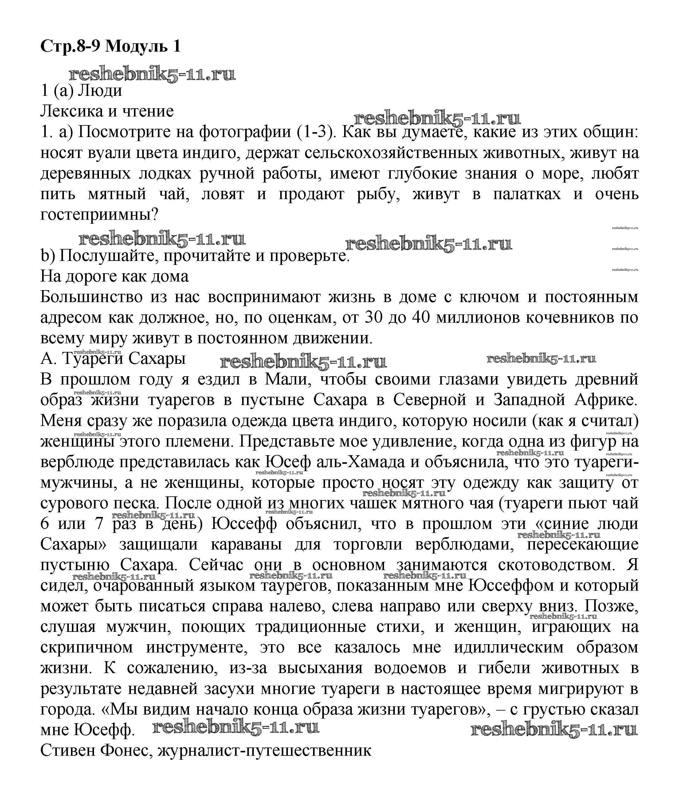Готовая домашняя работа с ответами по Английскому языку за 9 класс Баранова, Дули, Эванс, Копылова, Мильруд Учебник Starlight Углубленный уровень Просвещение 2017 ФГОС - Module 1. Lifestyles стр.8-9
