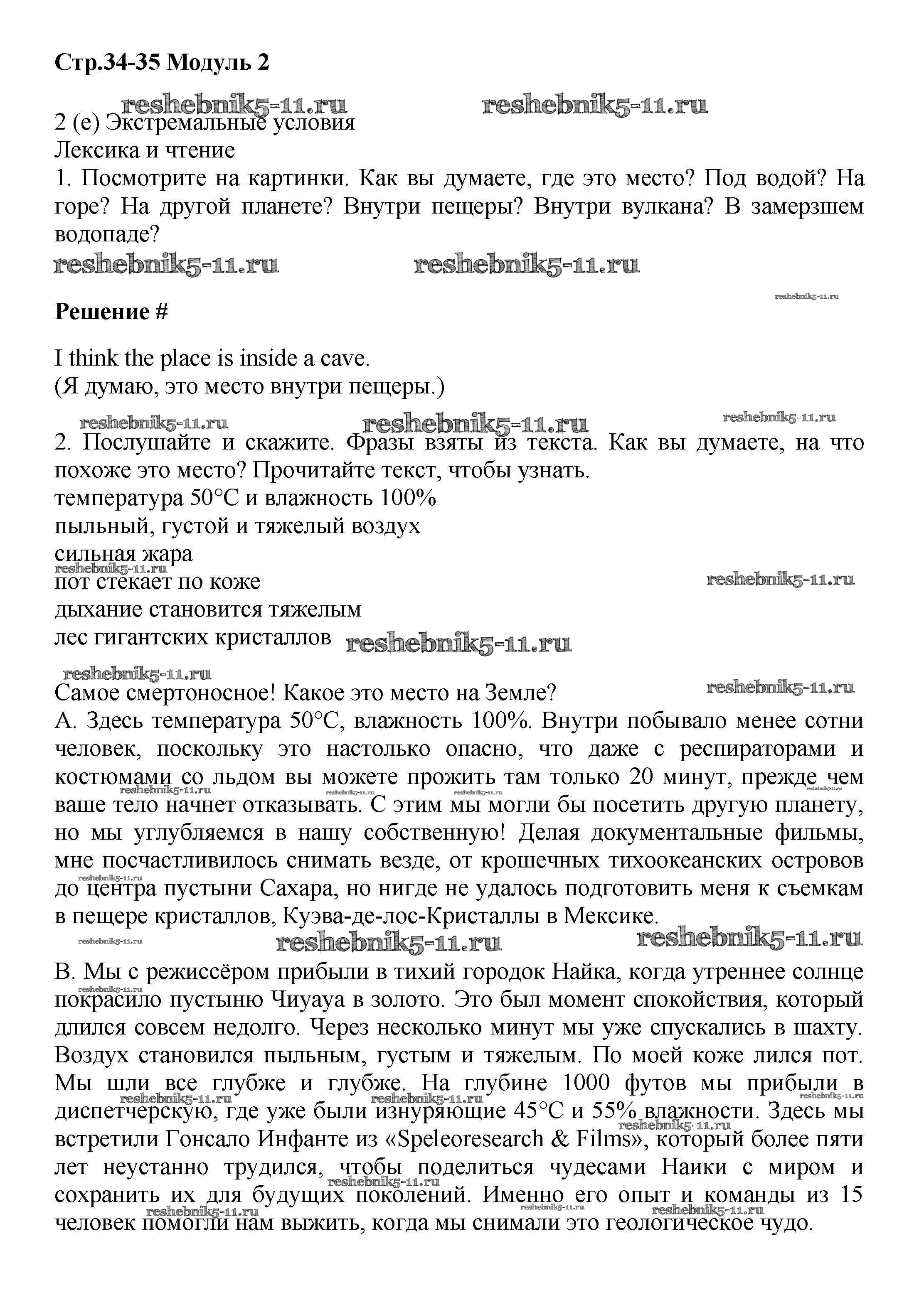 Готовая домашняя работа с ответами по Английскому языку за 9 класс Баранова, Дули, Эванс, Копылова, Мильруд Учебник Starlight Углубленный уровень Просвещение 2017 ФГОС - Module 2. Extreme facts стр.34-35