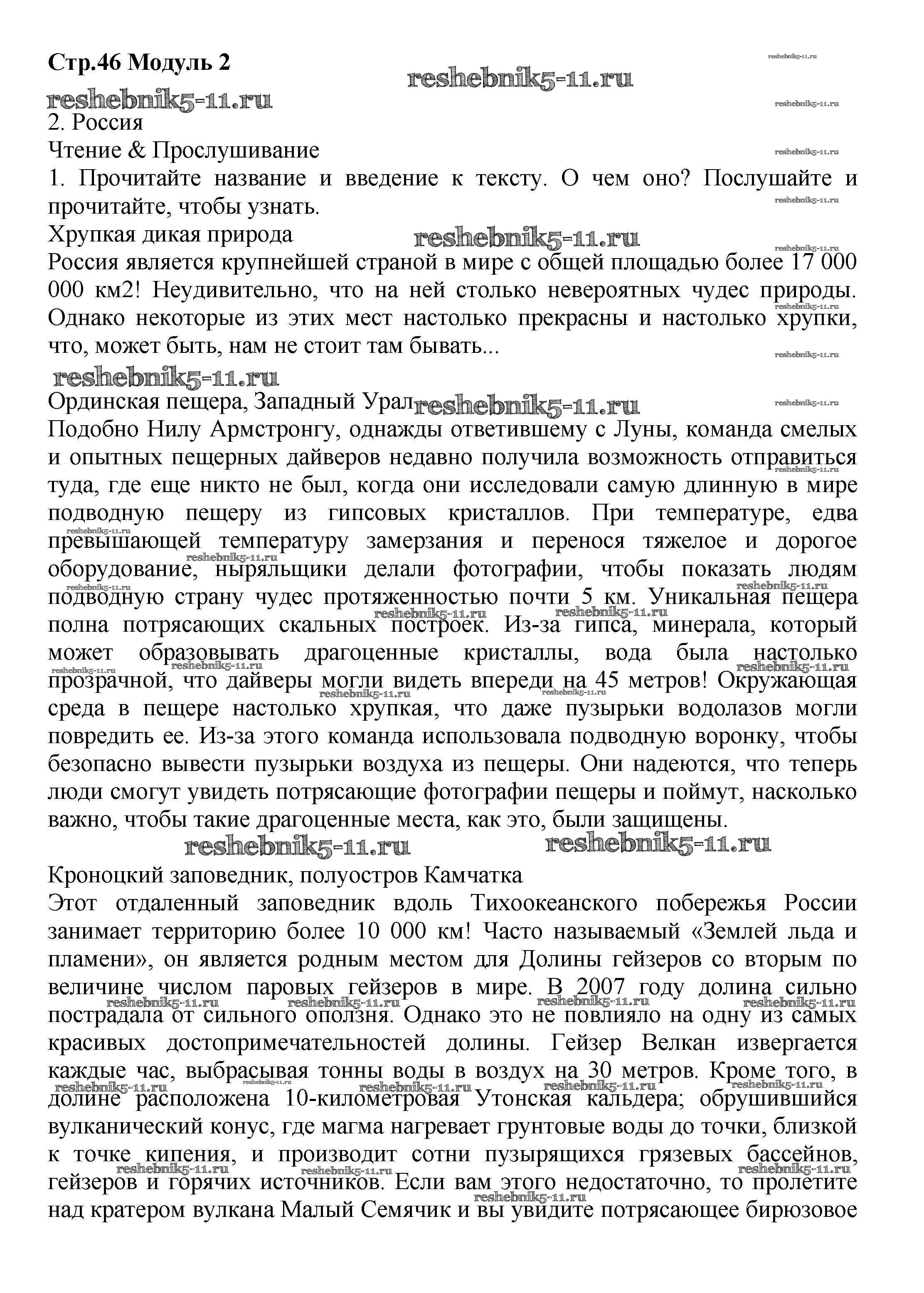 Готовая домашняя работа с ответами по Английскому языку за 9 класс Баранова, Дули, Эванс, Копылова, Мильруд Учебник Starlight Углубленный уровень Просвещение 2017 ФГОС - Module 2. Extreme facts стр.46